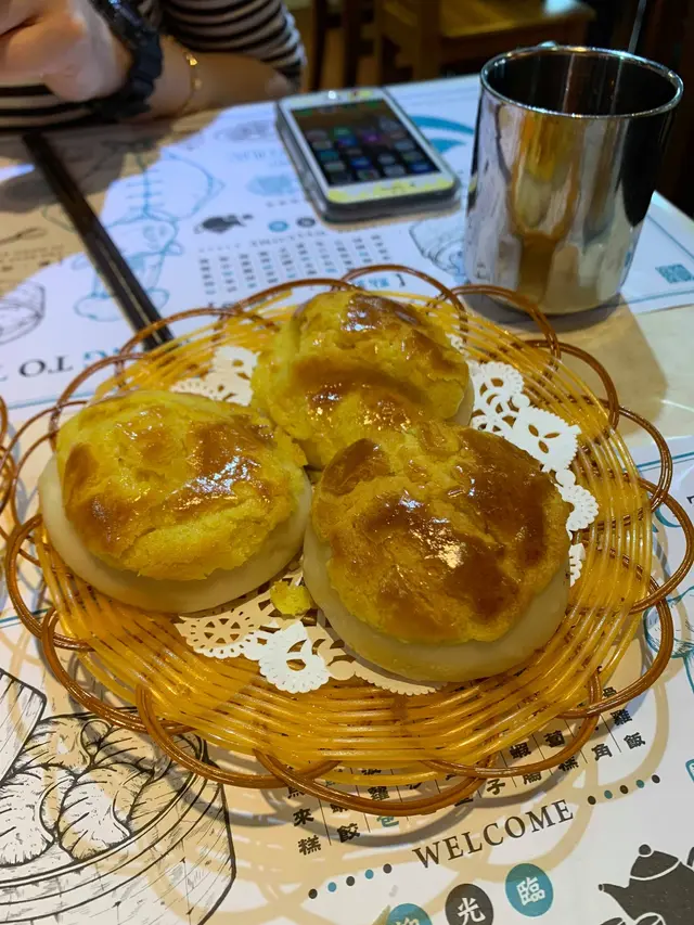 係圓方睇戲,未夠鐘就走出嚟搵下野食,近近地就見到點點心,決定入嚟試下。見冇咩人,入去個陣得兩枱客,姨姨叫我地自己揀位🤣一坐底見到menu有銀杏胡椒咸菜豬肚湯 $35,我的最愛緊係即刻叫個嚟試下。另外仲叫咗,蟹子燒賣皇 $36、古法馬拉糕 $22、脆皮鮮蝦腸 $34 同真係菠蘿包 $25。咸菜豬肚湯同菠蘿包到先,忍唔住即刻飲啖湯試下,胡椒味夠濃,都好足料,好多舊豬肚,豬肚好乾淨唔會有臭味,而且爽口。菠蘿包咬開入面真係有舊菠蘿,幾特別,但入面有層有d 似食奶皇包個陣嘅野🤔🤔,同想像有d 唔同。之後燒賣、馬拉糕同脆皮蝦腸都嚟齊喇,脆皮蝦腸正,夠脆,夠熱,試過係其他酒樓食過類似嘅,入面淋晒,但呢度仲係脆嘅,好香。馬拉糕正正常常,唔會濕晒淋晒。燒賣食落好似冇菇? 都好食,但爭d 香味。茶位每人$4,幾抵飲,兩個人食5樣野,好飽,爭d 食唔晒。有機會會再嚟食,因為仲有其他野想試🤪…查看更多