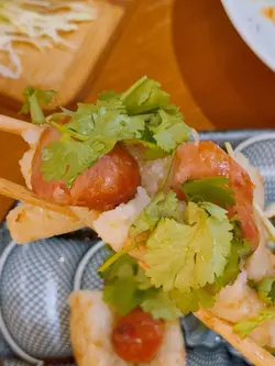 台灣必食小食 實物比想像更飽滿糯米腸嘅外皮煎到變咗脆殼切面露出油亮香腸同埋芫荽配料最鍾意係香腸嘅脆腸衣爆開之後香腸肉汁同埋糯米嘅黏糯感結合中間可以加啲脆爽酸菜 中和油膩5. 椒鹽魷魚鬚