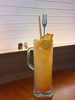 魷魚鬚嘅炸衣唔會好厚 清楚見到魷魚鬚肉外層炸到酥脆 內裡魷魚保持溼潤彈牙感覺都係啱啱炸起 熱氣騰騰咁好脆口6. 木玥黃金水果茶(鳳梨)