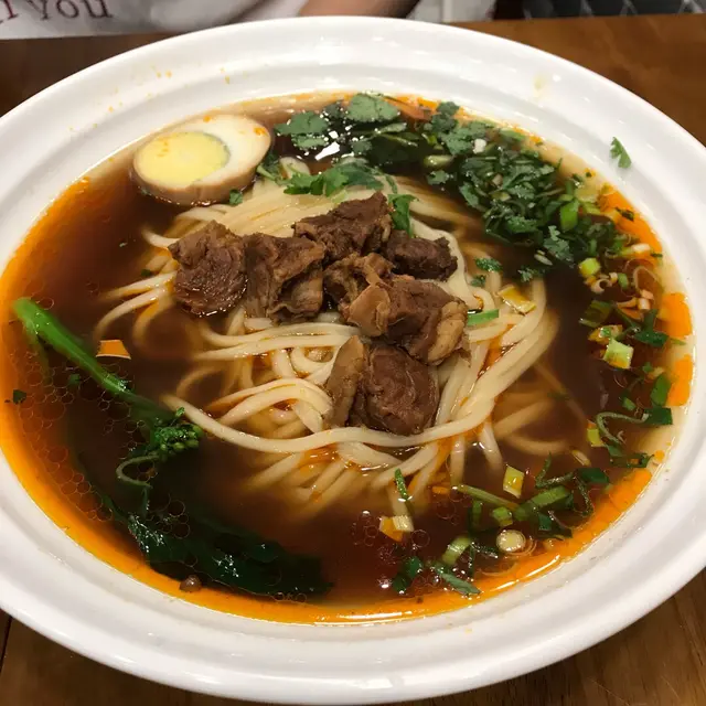 這天到銅鑼灣工作,恰巧餐廳在工作地點附近,工作完後便順道過來吃頓early dinner。下午茶時段至6pm,更配上小食一碟,這價錢在銅鑼灣區來說挺划算的。點了紅燒牛肉拉麵配泡菜及烤雞翅一串(少辣)紅燒牛肉拉麵的湯底微辣,十分惹味!牛肉亦煮得淋身,配上的薄寬麵,口感跟刀削麵相約,麵質的軟硬度適中,很不錯呢!泡菜跟韓式的截然不同,這款是只帶酸味的,十分開胃,吃麵時伴著吃,味道很夾!烤雞翅則以孜然粉及辣粉調味,烤的時間掌握得剛好,雞肉嫩滑,雞皮咬起來還是脆脆的,很好吃呢!是很不錯的一碗中式拉麵!…查看更多