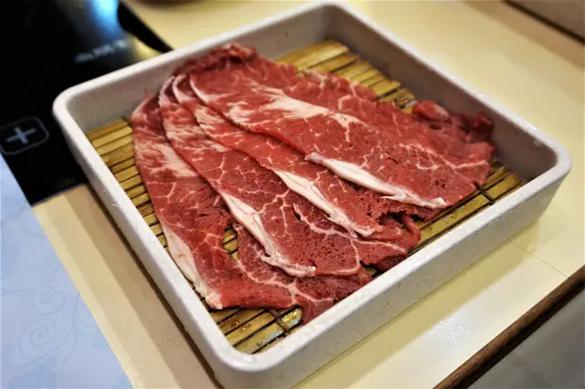 幾款牛肉之中,肩胛牛肉同牛板腱喺最鍾意嘅,先講肩胛牛肉,油份明顯唔會好多,由於薄切,輕輕灼一灼轉色就食得,入口脂香無咁重,主要食其肉香,肉質嫩滑細緻,富肉香。