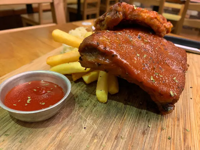 小妹同兩位朋友今晚來到這間德國菜餐廳。因為假日關係,餐廳只有正餐牌!(聽聞平日時間有$368的餐,有咸豬手、腸等等,很抵食。)我們決定叫一隻咸豬手和一客豬肋骨 Share。餐牌上,可以看到有兩款咸豬手。店員解說一款為蒸,另一款是炸的! 炸的比較香口。店員沒有介紹錯,炸的豬手口感豐富!皮脆肉軟,連肥膏也不會韌。豬手配上蜜糖芥末醬及加上酸菜,非常開胃。餐廳亦很細心預早將豬手切條,方便我們食用。而美式燒肋骨也很美感!肋骨肉燒得十分香軟入味,配上薯條份量十足,我們每人吃了3-4枝肋骨。再加上豬手的薯蓉打底,我們三個女仔也食得飽飽的。食左咁多肉,我便選了一杯熱薑蜜,味道有薑味,也不失蜜糖的甜味,很岩飲!對喉嚨也可以舒服些呢!整體來說,這個晚餐物有所值。坐得也很舒適。座位大大張的,椅下更有可以放置物品的箱子,方便客人。因為座位不多,建議大家早點去餐廳,免卻等位時間。…查看更多