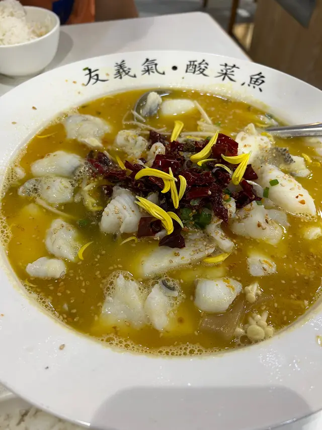 朋友話網上酸菜魚群組有人推介呢間嘅酸菜魚,咁就打算黎試試佢。星期一夜晚六點到餐廳,唔洗等位但都已經有幾枱客。環境就比起茶餐廳靚少少,小型中菜館嘅格局,但係冷氣就唔係好夠。兩個人黎之前已經諗好叫二人餐,$328有一個前菜小點、兩個主菜同兩個白飯。我地就揀咗口水雞、老壇酸菜魚同避風塘茄子。本身諗住加錢加紅薯粉落酸菜魚,但係侍應姐姐好好心,提我地個魚裏面已經有少少,再加會食唔晒,所以最後無加到。等咗一陣,先上冷盤口水雞,例牌每人有四五件,雞算滑,辣味都好夠,幾好食,送飯一流,仲有脆花生伴碟。👍🏻👍🏻跟住上重頭戲酸菜魚,裏面除咗魚同酸菜,配料有萵筍、金菇、薯粉同大豆芽。一黎緊係試試個湯,點知就換黎一個大失望。同朋友兩個人都覺得太酸同個酸味好似來自白醋咁,係食過個湯最差嘅酸菜魚。雖然個湯麻麻,但係魚就有驚喜,份量多而且好滑,值得一讚,只係食落覺得好似魚同湯係分開整,因為魚無乜酸味😂。其他配菜就不過不失,係浸湯浸到太酸😖。最後上埋個避風塘茄子,一上枱少少嚇親,因為個份量又係好多,不過最緊要個味道。食落係就係有少少油膩感,但係好脆身,亦都好夠「避風塘」,正!總括而言,三道菜食完一定會夠晒飽,味道都唔錯,係酸菜魚比期望差咗少少,下次再黎可能試吓水煮魚,希望會更好!…查看更多