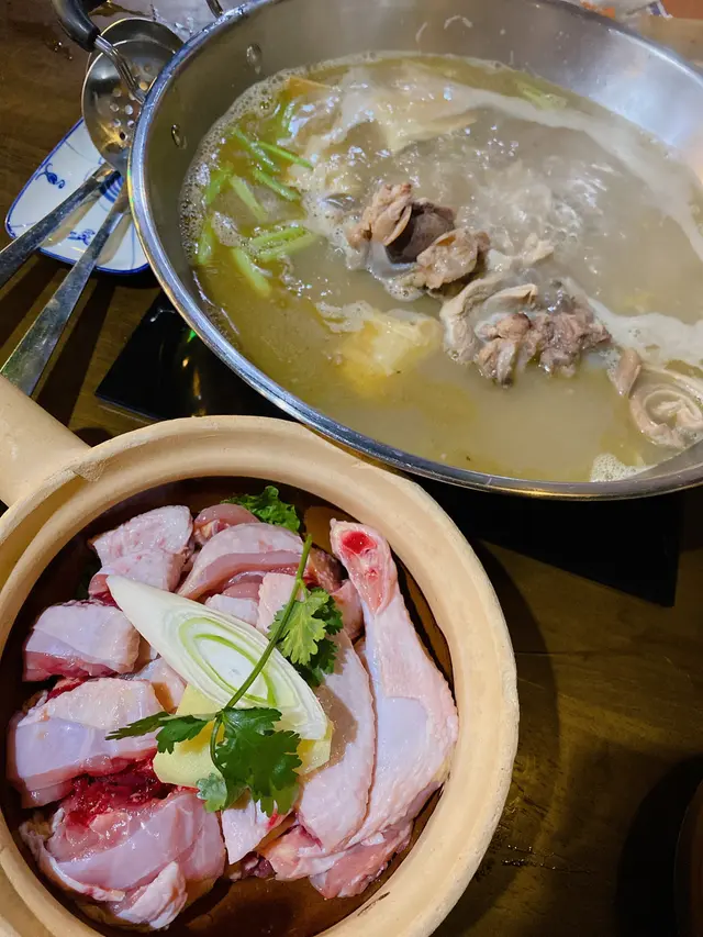 九龍城同撈同煲火鍋,就係銅鑼灣,地點方便,一入去充滿懷舊風,八九十年代香港風味😇餐牌就以特色手工火鍋為主,好多選擇,啤啤佢再揀,配埋戰鬥碗無得輸🥳胡椒豬肚少爺雞湯,胡椒豬肚湯,另外用煲仔上少爺雞既雞件,水滾飲湯🍲正到,仲加左豬骨既筒骨,好濃鮮既豬肚雞湯味,好味,食雞,幾滑,都入味😙特級手切牛,睇油花幾唔錯,食落牛味好夠,肉質正🤩腐皮好滑好入味,配個湯啱晒🤘🏻脆骨腩,一上已經知超高質,好厚肉,口感好脆肉質好正,真心推介🫶🏻 五香肉丁墨魚丸,五香肉丁原來會將墨魚丸既鮮味帶出,食得出既手打,幾正👍🏻午餐肉,正常好味😋娃娃菜可以飲住湯食成餐邊爐食材連湯底都相當高質💡又鮮又好味,手工料,加埋個懷舊風,成個體驗加晒分😙…查看更多