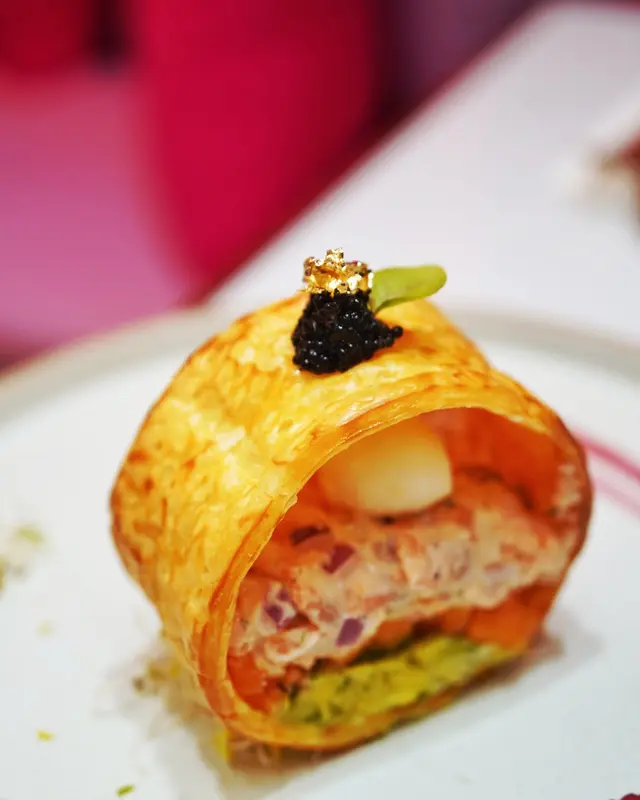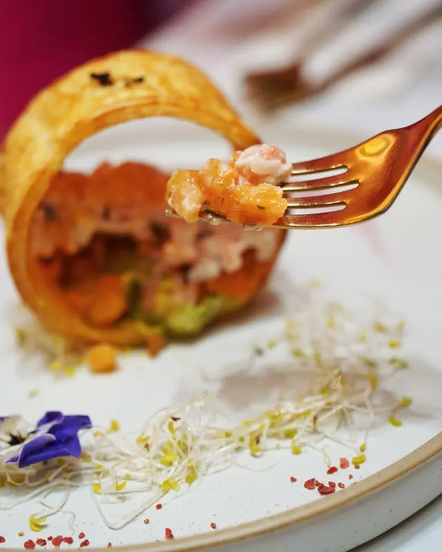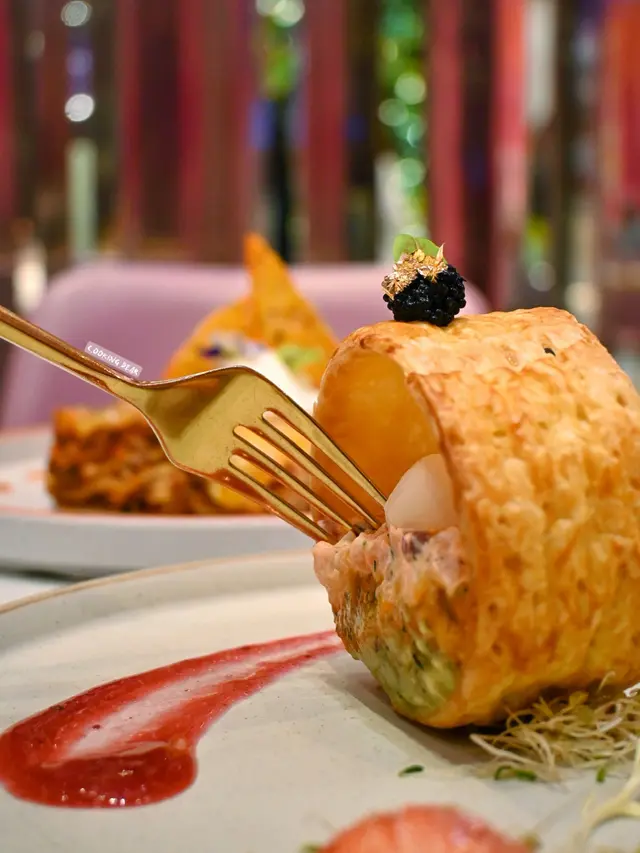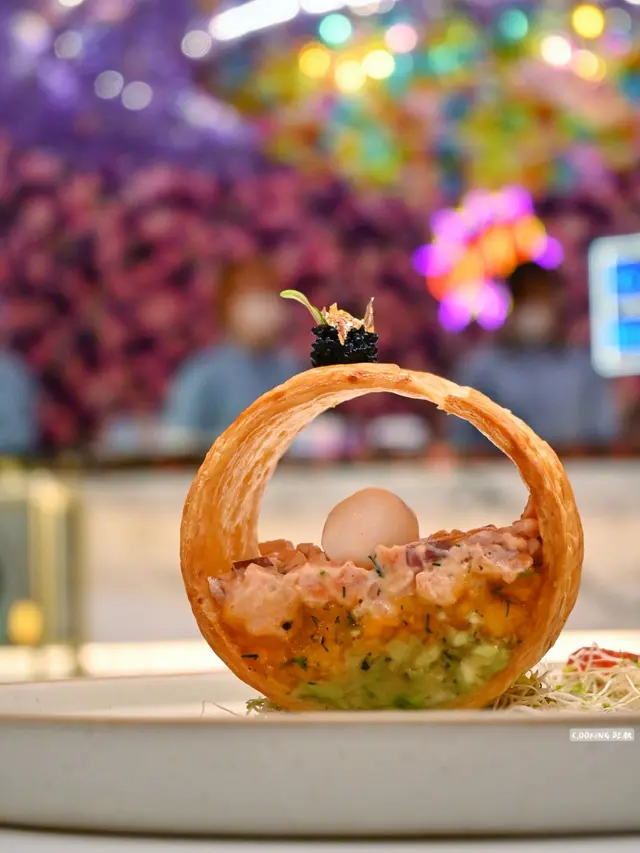 ✨ 自家製酥皮黑魚籽牛油果煙三文魚水牛芝士波波他他($168)外層酥皮包住裡面一層一層嘅他他賣相好吸睛~牛油果配三文魚加芝士不敗配搭,酥皮非常脆口 😙。✨ 有機開心果法式慢煮寶雲酥羊架伴脆薯條($348)經慢煮嘅羊架鎖住肉汁,不過如果羊架大份少少會更好。✨ 黑魚籽麵包蟹意大利飯($228)份量比較多,飯呈半生熟夾埋菇同洋蔥粒,面層舖咗蟹肉同黑魚籽撈埋飯一齊食唔會單調。✨ 潘朵拉的盒子 — 延續($168)係每日限量供應嘅甜品,卜開外層嘅糖霜,中間係Charcoal Tart上面舖咗蛋糕,切開仲有流心黑芝麻Mousse同埋麻糬,整體食落唔會太甜(岩我!)💕,黑芝麻味比較突出。✨ 紫醉金迷($72)加上蝶豆花蒟蒻嘅提子梳打口感十足,賣相精緻,飲落會有少少甜,溶咗冰會岩岩好。✨ 宇治抹茶珍寶牛油果奶昔($82)牛油果味濃郁,奶香濃厚,對比之下抹茶嘅醇香會冇咁突出,整體好飲~·以萬花筒為主題嘅餐廳,環境真係好靚同有特色,鍾意打卡一定會Like~·🧾 需加一服務費💰 $1172…查看更多
