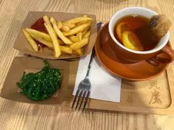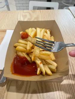 仲要人均百幾蚊,真係幾抵食。不過lunch就唔食咁飽,所以淨係叫咗burger薯條同埋千層麵,加小食同嘢飲。薯條單叫$18,如果叫咗主食跟餐就會平啲,$15有嘢飲同薯條。其實都幾大兜,仲要係粗切薯條,啱啱炸起好脆口