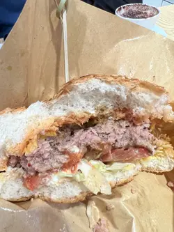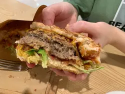 個burger係即叫即整,超級足料,講緊係大過一個成年男士嘅手(拎起都好重手)比起某間M字頭Burger,真係講緊差唔多兩至三倍嘅餡料