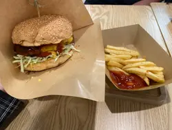 ,食落去係好傳統嘅burger味,加咗芝士同茄汁,肉扒好Juice,咬落去都會有汁水流出,唔會好乾,成個burger口感豐富,啖啖肉