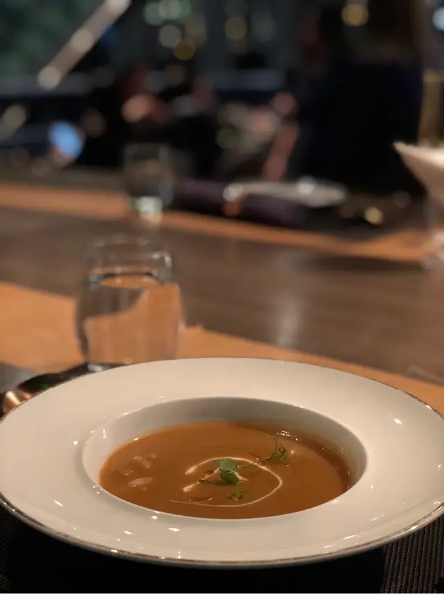 Cubus28,名符其實就在Cubus28樓,是一個電梯按27樓去不到的地方(按26樓一樣去不到,按25樓一樣去不到...下刪一萬字)。 如此裝潢高級、浪漫情調的地方,偏偏是兩兄弟一起去,雖然"能成為密友,大概總帶著愛",但始終關係並沒有好到一張床上,只好扮地下情的明星,小心奕奕地前後腳到場,以免被人發現這一分剛剛發芽的情份(講笑咋)。1. 手撕法國鵪鶉伴海膽汁海蜇:可食用的水母,味道惹上一點兒辣,反而麻醬味較重及稔身,伴碟還有炸麵條,Fusion得來好精細。2. 金箔阿拉斯加蟹肉南瓜蛋白躉:一絲絲的南瓜,一點點細碎金箔裝飾,不溶不散,濃厚稠身。想不到底部係一層燉蛋白,一嚐細滑且充滿蛋香味。3. 花膠螺頭片波士頓龍蝦湯:蝦中之王的龍蝦湯果然是濃蝦味,不似坊間以蕃膏味蓋過,加上十分彈牙既花膠及螺頭片,為整碗湯生色不少,充分帶出鮮味。4. 黑珍珠海膽燒賣:賣相精緻,在傳統既燒賣,加上一小撮黑魚子及海膽裝飾,以火槍輕輕炙一下,搖身一變新派菜式,吃落豬肉結實彈牙,冬菇帶香。5.金莎芥茉鴛鴦蝦球:頗考功夫的一道菜,要做到黃金流沙不易,蝦肉彈牙可口,芥茉添色之餘,不會太濃搶味,底部襯托脆脆米網,可謂色、香、味俱全。6. 慢煮西班牙伊比利亞黑毛豬鞍配薯菜:以前食過幾次黑毛豬,確是比一般豬肉味較濃,可能由於品種係放養,運動量大致肉質會較嚡口,常見多取自一支支既骨位,近骨的肉更加肥美甘香。7. 金箔紅酒烏梅山楂糕:賣相高貴,酸酸甜甜,又有輕輕紅酒味,把味蕾帶到又甜又醉既境界。吃到最後,有人生日,餐廳竟放起璀璨煙花來,浪漫情調的氣氛更覺熾熱,所以說吃飯的時候,如果不是情深款款望住她,左手拖著女友,右手品嚐美食,再拖足全程的話,只會與這地方不相稱。因為不是浪漫,就是浪費... 晚餐菜單(部分菜式有更改)環境:…查看更多