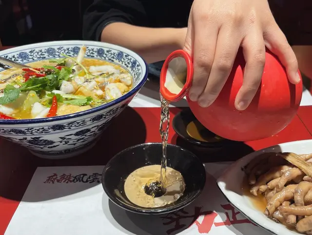 經常喺網上都見到嗰隻裝住炸饅頭嘅船 真係好有氣勢 餐廳裝修仲有少少中國風 好啱打卡😎 所以今晚就衝住呢道打卡菜式嚟啦👏🏼前菜小食前菜小食係一個特製嘅花生同埋中華沙律😉 我真係好鍾意佢嘅花生 因為有少少麻麻辣辣仲有紫菜嘅香味🥜 中華沙律都有少少辣味㗎酸菜魚呢個酸菜魚都幾出名 好似每枱都會叫咁🐟 我哋嗌咗小辣 酸酸地又辣辣地 都幾刺激 魚肉幾嫩滑 底下仲有薯粉 煙煙韌韌 炸饅頭係一碟好有氣勢嘅菜式 除咗有隻船之外 仲有底下嘅煙 真係好有特色😝 炸饅頭外脆內軟 金黃色嘅表面配埋煉奶 真係好夾口水雞(例牌)冇諗過呢碟口水雞係冷盤嚟嘅🐥 雞肉嫩 雞皮仲好有口感 面頭既花生碎令雞件更有口感🥜 呢碟都唔算太辣 容易入口黑糖脆炸糍粑呢個都係餐廳推介嘅菜式嚟㗎 係一個飯後甜品 不過都係絕對有啲飽肚😂 因為呢個糍粑係糯米做㗎嘛 配埋側邊嘅黑糖醬汁同埋黃豆粉 味道幾豐富😌菊花蜜(埕)嗌呢個飲品嘅原因係因為佢嘅外型真係好適合打卡啊🥰 真係好有中國傳統風味 連飲呢個菊花物嘅容器都係一個小碟 好似拍緊古裝咁呀😝 味道唔會太甜 但係清清地幾好飲雖然開頭係俾嗰隻裝住炸饅頭嘅船吸引咗嚟 但係其他麻辣菜式都唔錯㗎 想食辣野都可以試吓呀😋…Read More