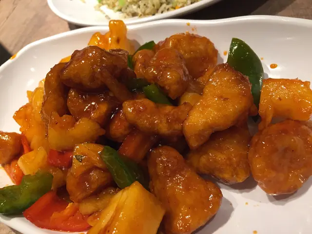 朋友今晚忽然想食素清淡啲,於是我哋就去咗最多素食店嘅北角揾食。友人介绍,我哋嚟咗聰嫂食素啦,嚟到先知係間新派嘅素食館, 地方不大 ,座位有限 。友人話呢度啲小菜幾掂,睇餐牌,選擇唔算好多,見隔離枱一對男女叫咗個菠蘿咕嚕素肉,顏色好搶眼,問味道如何,個女話好好食,就叫咗呢個小菜一小菜送例湯,但