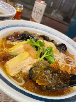 作為前中環人~好鍾意去和安里搵食!今次要快食,揀咗滋補養生嘅 馬祖台灣養生湯麵館藥膳古早牛肉湯手工麵 $75第一啖一定係飲湯😌好濃藥材味同牛味👍🏻四大嚿牛肉,唔係腍但又唔韌,兩大舊蘿蔔都好入味👍🏻手工麵出色,扁的,好掛到湯,睇佢隻色就知入哂味,其他轉手工麵要加$10,呢個唔洗!食快啲,凍咗啲油頃喺面藥膳桃膠農場雞米線 $67湯頭清甜,一樣食到濃濃嘅藥材味,牛湯比較重口味,呢個就清清地😋超多桃膠👍🏻雞就唔算太入味,切得比較大件,但雞肉都好嫩滑嘅!另外見到有個台灣直送澎湖特A級花枝丸$48,一直心思思想試,食得出係用新鮮墨魚肉打成飲品有罐裝、自家冷泡茶可選整體來講,好唔錯,高質小店養生之選…查看更多