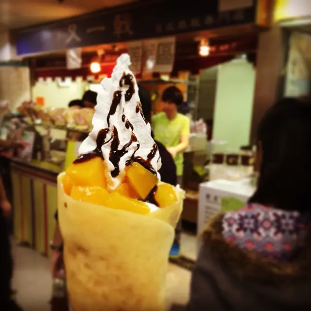 星期五去葵涌廣場購物,之前只食碗麵,逛了一會兒有點餓意有點甜意,路過看到一間班戟專門店時常大排長龍,心想水準應有保證。因為我想如少人光顧,生果、忌廉未必新鮮,我腸胃較差怕肚痛。最後點了約 $22 蜜桃雪糕班戟,實在太熱鬧,我要等大約6個人,因為只有一人整班戟,新鮮即製,而且落單有條理不會亂。賣相不錯,忌廉我覺得ok,不過未必人人喜歡,蜜桃份量都算多,食極都有,而入面的雪糕是士多啤梨 (可選其他味),雪糕第一口覺得太冰凍,冬天食的確另一番滋味,味道不太甜還可以。$2x 價錢都算抵,而且有鹹食班戟選擇。…查看更多