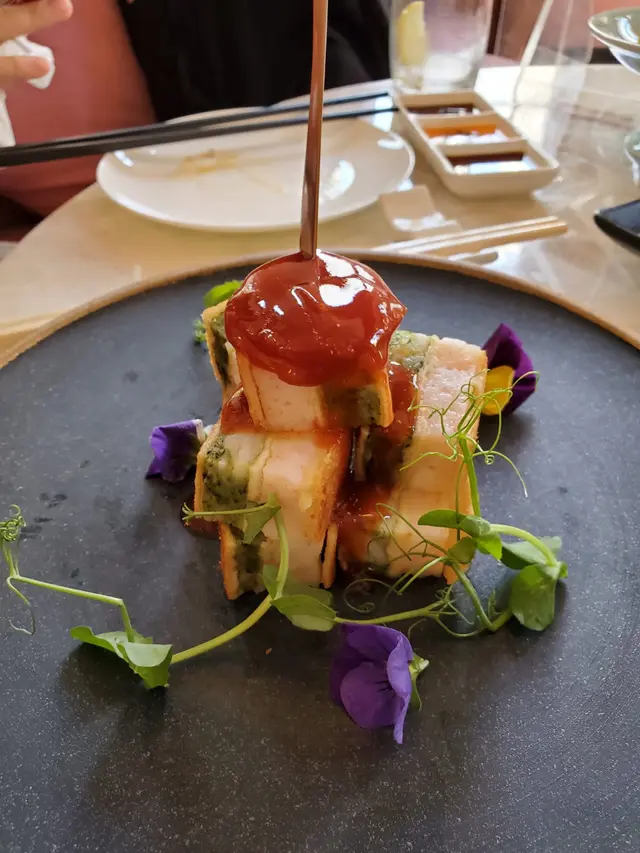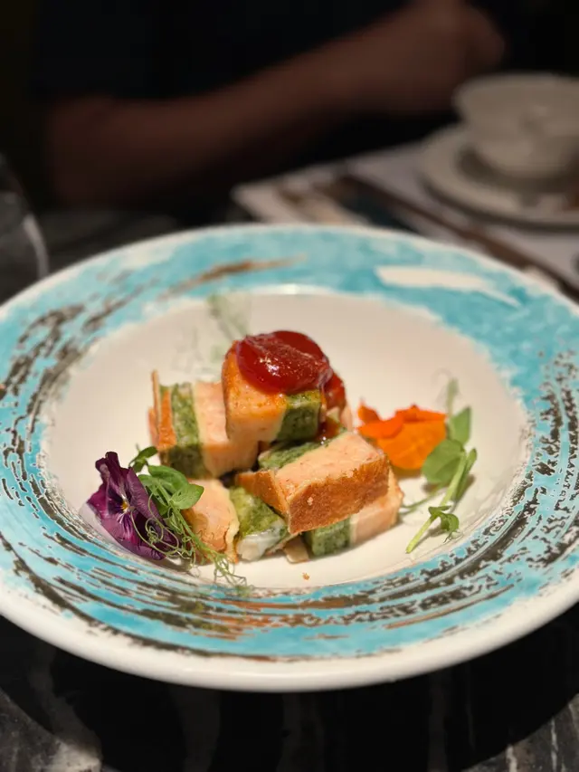 跟家人一行八人吃團年飯 當然需要選一家舒服又氣派的餐廳 長輩才吃得開心我又放心 特意選了坐落在大管營房大樓三層全層的Madame Fu~ 遠眺中環半山的夜景 身處大館的古蹟文物裡面吃飯 感覺特別不一樣 我們人多點了很多款他們家的招牌菜 火焰斧頭牛扒 黑松露脆皮雞 季節特別供應的燒鵝 還有很多必須要著重點名稱讚這次的牛扒 特別軟嫩多汁 上菜前還會有火焰的桌邊服務 又可以打卡又好吃 燒鵝真的是隱藏寶藏 吃過大大小小有名的名店 都覺得一般沒什麼記憶點 Madame Fu的燒鵝 外脆內軟 汁香味濃 入口就知道是廣式傳統的風味~ 燒鵝底下還配有香脆的米餅 配燒鵝汁真的一口入魂頂級的美味!!配上貼心熱誠的服務 是讓我一次又一次到訪的原因!