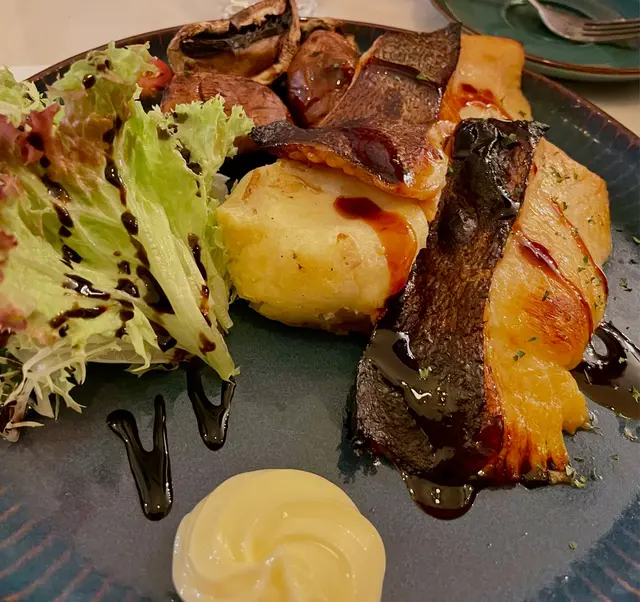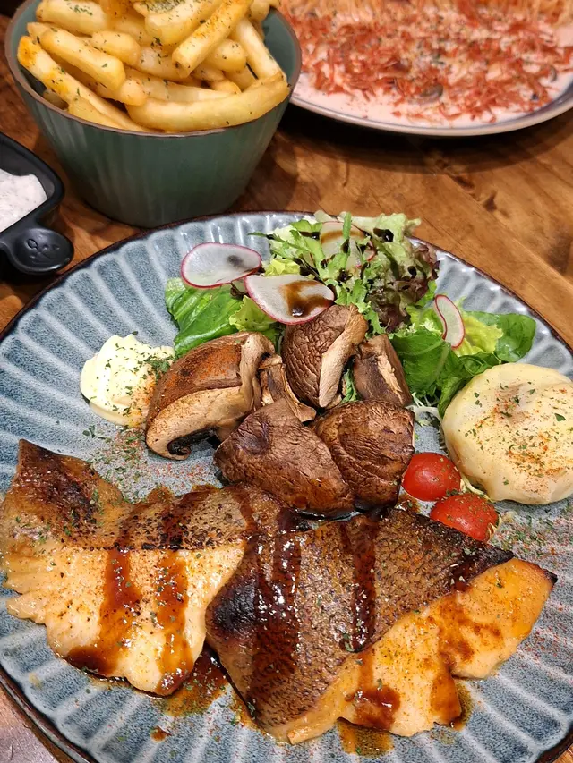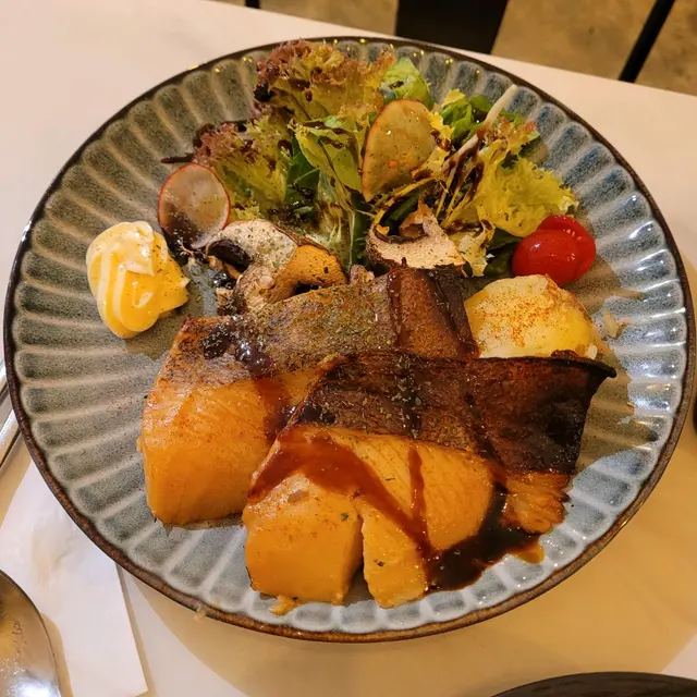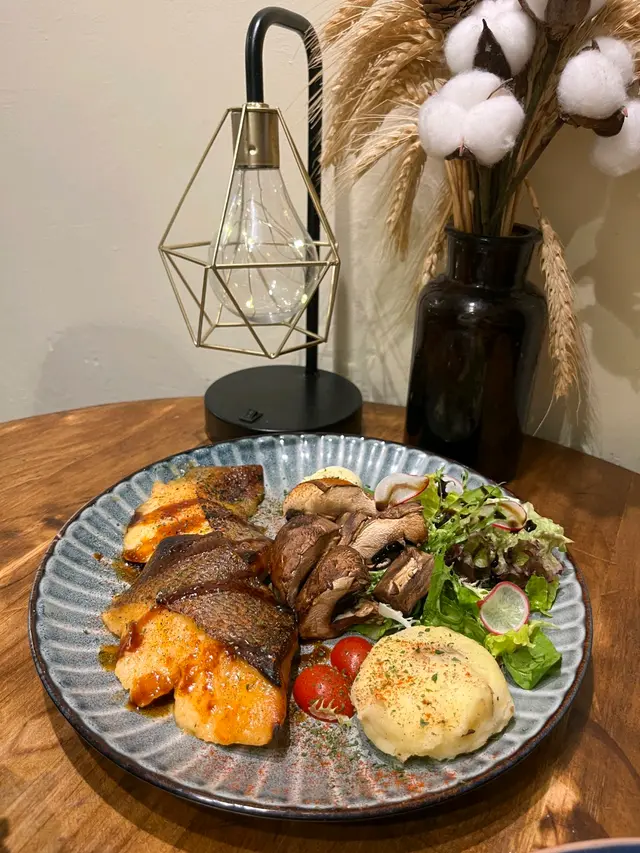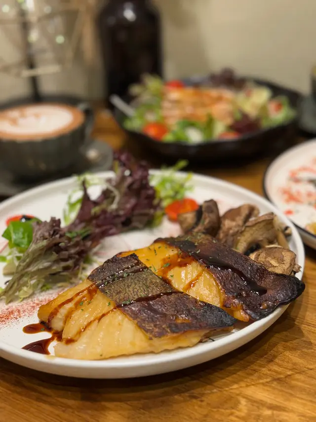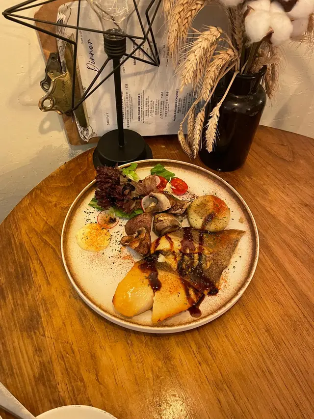 去附近聽talk前search到呢間特色小店,意料外食物質素幾高,2人輕晚餐叫了<🐟西京燒比目魚>、<🥐煙三文魚牛油果牛角包>同<🍰New York Cheesecake>,大滿足!<🐟西京燒比目魚$128>第一次試西京燒,甜甜地好開胃,原來呢個係日式家庭料理,用白味噌吊味,魚更加鮮甜,配大啡菇、薯蓉同沙律(有🍓!!)大推!<🥐煙三文魚牛油果牛角包$68>可惜墨西哥餅sold out!! 不過牛角包都冇伏,好鬆脆香軟,有芝士、牛油果、番茄、煙三文魚,每啖都好fresh,唔油膩!<🍰New York Cheesecake$52>雖然小貴,但個畫碟已經值回票價,打卡一流!味道standard,上面淋上🍓醬,減輕膩感!🔂下次多啲時間可以試下佢既$468 dinner set, 包湯、前菜、1個pasta、1個main、2杯野飲同甜品,一人都係$200幾!✨加分位:☝🏻店鋪好多小擺設慢慢等客人發掘✌🏼店員好nice,拯救左我🪫的電話🥹…查看更多