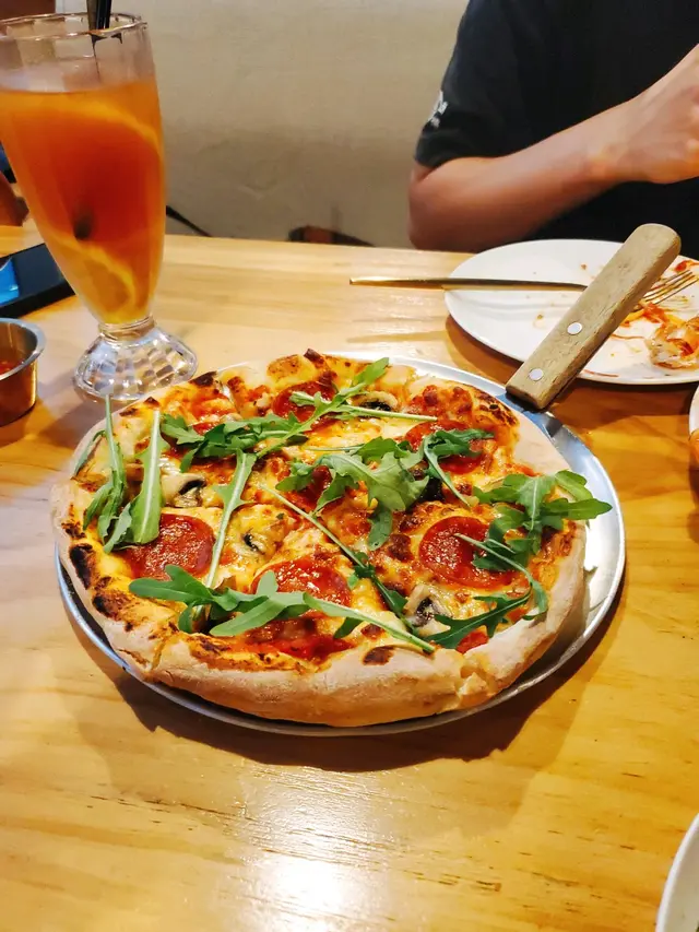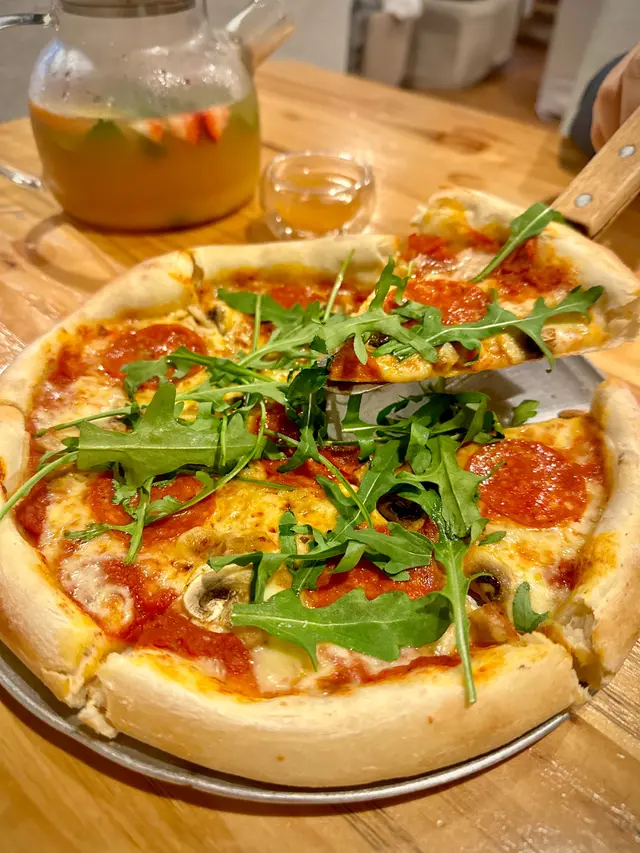 大家好今晚去了旺角登打士廣場12樓既部屋咖啡室食飯呢間係一間樓上Cafe有好多Board game 玩同埋旅遊書睇位於12樓仲可以睇到街景食物方面我就點了COMBO For two 二人套餐包左10吋手拉Pizza 炸蟹餅 意粉或飯一份 同餐飲2杯飲品點了綠茶紅豆奶茶同埋小紅帽綠茶紅豆奶茶都有綠茶味同幾多Cream而小紅帽其實係士多啤梨奶昔唔會太甜有D奶昔同沙冰既合體都唔錯先上既越式炸蟹餅係鮮炸食落有D似魚蛋仲有甜酸醬意粉我點了香辣虎蝦海鮮意粉海鮮有虎蝦 青口同魷魚都幾多材料配合蕃茄醬調味唔錯而且都係新鮮即整意粉都好彈牙跟住Pizza點了西西里Pizza這個Pizza主要材料有辣肉腸 蘑菇 不過即焗茄醬芝士味都好香手拉面皮有少少韌度幾好食最後點了豆腐芝士蛋糕豆腐同芝士一半半唔會太Heavy總括呢間店食品都唔錯或者玩下board game 朋友眾會都係唔錯既…查看更多