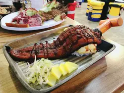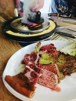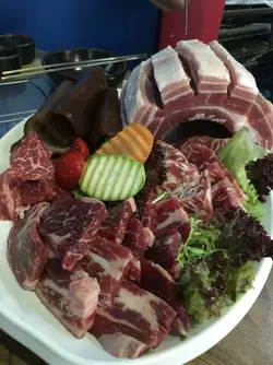 今晚約左男友人食韓燒,睇完餐牌後都係決定食鰻魚飯,好似好吸引咁,男友人就叫左個燒肉餐。爐開左之後,喺蛋漿上加人粟米同芝士就等佢熟。首先燒左豬皮,好香,唔錯!然後就燒磚頭五花腩,好肥厚,用個熨斗板壓一壓會較快熟,前後反左幾次終於燒好,然後剪成一條條就食得。豬肉味香,點啲醬油一齊食都幾好味。燒完豬個鰻魚飯就到啦,比我預期嘅大條,好正呀!鰻魚味道好好味!什至比燒肉仲好味。中間有層玉子,入口係半熟,蛋好滑,一啲都唔老。燒完豬之後就換個網燒牛啦。牛分別有一口雪花牛粒,牛肩胛同m9霜降西冷,味道黎講最滿意牛肩胛,入口油香四射,肉切得夠薄,好滿足。最後飲多杯荔枝特飲,like fb送架,份量夠哂大杯,配燒肉就最啱!…查看更多