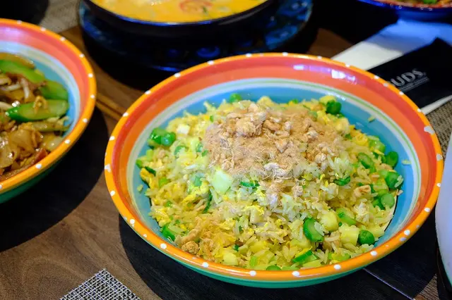 呢間餐廳裝修好似Cafe,又似酒吧點知原來係泰國餐廳🤣 素春卷:炸得好脆,中間有啲粉絲、薯仔蓉、雜菜絲配埋個甜酸汁,越食越開胃😋 蜂巢蠔餅:唔算有好多蠔仔,而且啲蠔仔亦都好瘦🙃成個蠔餅好厚粉,而且個底亦都好多油🙃配咗魚露俾我哋,不過真係好鹹,個蠔餅本身已經有鹹味,所以感覺唔太夾,唔太推介 豬肉鬆菠蘿雞粒炒飯:炒得都粒粒分明嘅,但係肉鬆比較少普普通通,中規中矩 辣椒椰子雪糕:好特別嘅配搭,所以真係要試吓🤣椰子味真係好香😋雖然食落都有幾粒辣椒皮,但係都唔算好辣辣辣地甜甜地咁,又意外地幾夾,值得一試👍🏻 菜式:- 素春卷(4條):$88- 蜂巢蠔餅:$168- 豬肉鬆菠蘿雞粒炒飯:$138- 辣椒椰子雪糕:$68 味道:🤤🤤🤤🤤/5性價比:🤤🤤🤤/5…查看更多