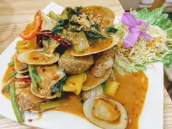 辣蝦膏炒大蜆, 原本還擔心辣蝦膏太辣食不下去, 但反而是辣度不足