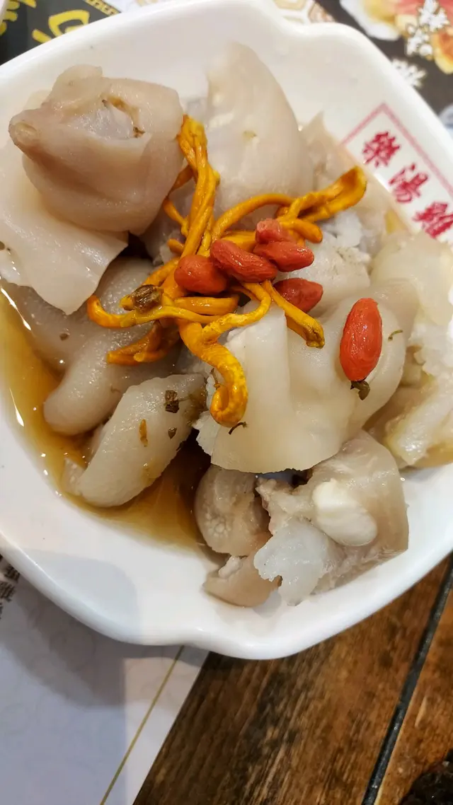 此餐廳以無添加味精做招徠,大部份湯底以雞湯做主打,另外還有足料的當歸黨蔘藥膳湯。街坊想豪食一餐鮑蔘翅肚;或者飲碗老火靚湯,配碗飯麵都得。豐儉由人,絕對是入得廚房出得廳堂的一餐住家菜。週年期間限定的鮑蔘翅肚一人餐,只需$168。有花膠,又有群翅,用料十足;比得上很多大酒樓的所謂金湯翅綽綽有餘。海味一品鍋更有元貝,鮑魚,海蔘和花膠。以此價錢,當然不是一級材料,但絕對已交足功課,口感也夠軟身。醉雞更配上少量蟲草花,肉質嫩滑,略嫌酒味未能滲透在其中。最後仲有一碗鮑汁飯,雖然味不算濃,但也為此一人餐劃上完整的句號。砂鍋雲吞雞麵,絕不欺場。雲吞有湯匙大,包住一隻原整的大蝦,雞肉雖然在湯中,但還有口感。很多時,坊間的雲吞雞肉也比較梅爛。一上枱,已聞到濃濃的椰子味,桃膠又清楚可見有一堆。在眾多雞湯款式中,椰子雞湯應該是最值得飲。其他的雞湯主要是加了花膠,翅等,基本上不能增加其鮮甜味。豬手炆得夠軟身,同樣配上蟲草花和杞子。可以小食點選或配湯飯。反之藥膳雞腳就太硬了,建議可煲耐點,軟綿一點口感更好。至於夏日期間限定的鮑魚冬瓜粒粒湯飯除了有鮑魚做亮點外,湯就淡了一點,冬瓜又少了一點。還是點客雞湯或藥膳豬手配飯,食得會更惹味。…查看更多