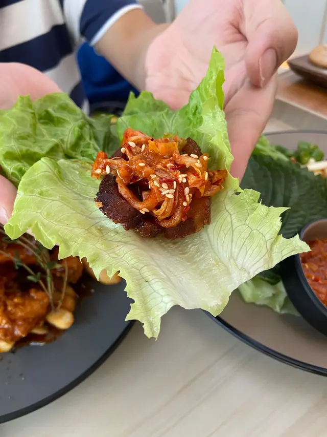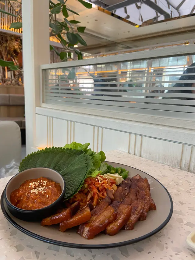 宜家韓國菜🇰🇷大行其道,今次試下呢間~ 以輕食為主,結合西餐同韓國🇰🇷輕食文化,可以享受fusion美食,而且以自助形式取餐又會無咁貴~ 裝修又幾文青,以簡單既灰白色為主,有好多乾花💐裝飾既枱,又有幾多綠化植物做裝飾🎍,感覺幾舒服😌(5 😍 係滿分,🤩係半分)玫瑰醬海鮮年糕 🌹 - $92 (好味指數:😍😍😍😍🤩)玫瑰醬🌹係喺韓式辣醬🇰🇷🌶️既基礎上面再加奶油同茄醬🥫,顏色比較靚又無咁辣🌶️,質感creamy,帶有微辣🌶️同微酸,惹味開胃🤤 啲年糕比較腍同幼身,會容易啲索汁,煙韌軟糯😻 亦有唔少配料,包括鮮甜既青口🦪、鮮味既既蝦🦐、彈牙既魷魚🦑、多汁既番茄仔🍅同埋清香既火箭菜🥬,飽肚又唔漏😋韓式炸雞 (無骨半份) (柑橘炸雞) 🇰🇷🔥🍗 - $108 (好味指數:😍😍😍😍)韓式炸雞 🇰🇷🔥🍗既特點係先將雞肉🐥醃入味,裹粉之後炸兩次以增加酥脆感,最後再快速裹埋柑橘醬🍊~ 表皮都唔會好厚,口感酥脆,裡面既雞肉🐥嫩滑juicy有雞味🐥,同時有芳香馥郁既柑橘香味🍊,酸酸甜甜可以解膩又開胃🤤 仲有啲煙韌軟糯既年糕同埋香脆綿密既薯條🍟,幾滿足😌醬油黑毛豬白切肉配大醬生菜 🐷🥬 - $182 (好味指數:😍😍😍😍)份量好多,黑毛豬🐷肉質鮮嫩爽口,肥瘦適中,有幾香濃既肉味同油香,如果可以切薄啲就更加好啦~ 配埋有鹹香既醬油、清香微辣🌶️既大醬同清新爽脆既生菜🥬,幾有層次感~Banchan and Cook 提拉米蘇 ☕️🍰 - $68 (好味指數:😍😍😍🤩)韓式提拉米蘇🇰🇷☕️🍰既口味會特別啲,今次既係紅豆味🫘,味道香甜,口感綿密~ 同時個提拉米蘇☕️🍰有醇厚既咖啡味☕️,質感幼滑有奶香🥛,上面仲有朱古力碎🍫,係略嫌mascarpone cheese🧀既味道唔夠,整體比較似普通海綿蛋糕🍰軟綿綿紅豆 · 豆花沙冰 🫘⬜️🍧 - $58 (好味指數:😍😍😍😍🤩)呢個組合幾特別,紅豆🫘味道香甜,質感綿密,配埋清香、細緻軟滑既豆腐花⬜️,配埋幼滑既沙冰🍧,唔係好甜,清爽解渴~白桃甜蜜梳打 🍑🍹- $46 (好味指數:😍😍😍🤩)呢個有清香白桃🍑香味,味道酸酸甜甜,有埋有刺激感既既梳打🍹都唔錯,不過有啲普通好味指數:😍😍😍😍推介指數:😍😍😍😍…查看更多