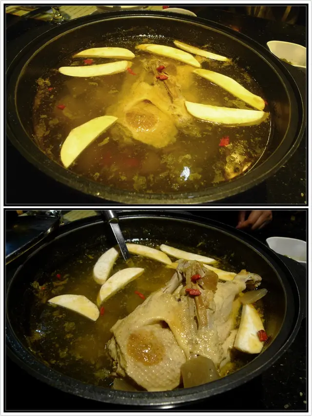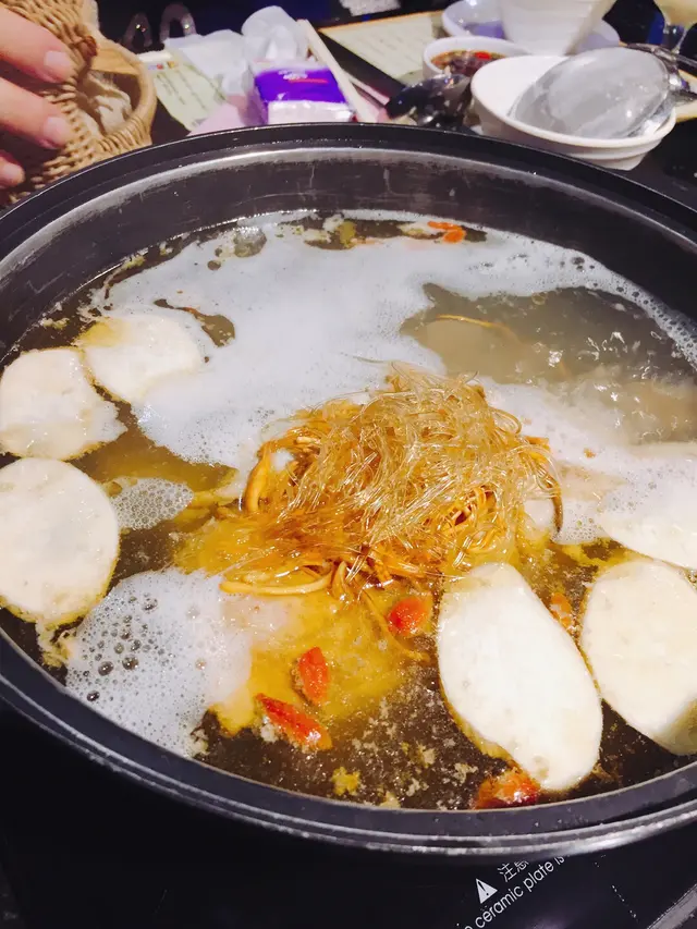 朋友想火鍋但又不想每次都先雞煲後才食火鍋對女仔來講有啲飽,上 Openrice 找一找,找到這間位於佐敦文昌街的「金撈老鴨湯剌身火鍋專門店」以老鴨煲湯來做火鍋湯底,看過食評後決定一試。金撈老鴨湯一隻 $268金撈老鴨湯用了一隻老鴨、蘿白、杞子來燉煮,上枱後店員會先把湯煲滾,之後把鴨皮和在湯面上的肥油除去,之後再為我們每人奉上一碗,滋潤養生的鴨湯,味道香醇濃厚,足足飲了三碗才開始火鍋,這個時候店員會再加鴨湯,而不是一般店鋪所用的味精湯。至尊牛三星 $398至尊牛三星買相豪華,三層的牛肉有四款,包括 (本地手切牛頸脊、什錦牛柳粒、牛胸爽和牛舌芯) 牛肉味香濃,尤其是牛胸爽比一般的店子切得較為厚身,食落更加爽脆油潤感十足。家姐辣餃子 $68家姐辣餃子全手工製作,入口微辣有口感。脆骨腩 $68脆骨腩 $68 真的很底食,脆鯇新鮮份量足,每一件都閃閃發亮,未放湯以口水流。美國桶蠔 $148美國桶蠔隻隻珍寶 Size, 入口溶化不韌也沒渣,令人食得十分滿足。…查看更多