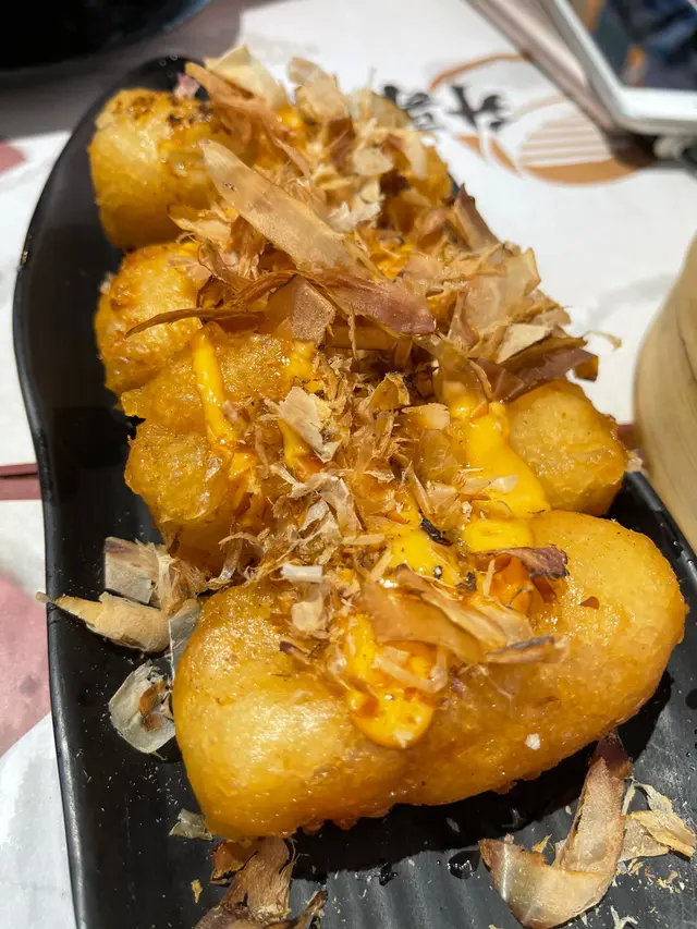 元朗站📍升哥點心(元朗)-第一篇食評由最近食嘅點心講起。天氣凍有時都想夜晚飲啖茶食個包,今次去左升哥點心。金玉滿堂蘿蔔糕($29)呢碟蘿蔔糕真係好邪惡,外層脆卜卜,入面熱到爆,上面再再千島醬同木魚😋成個感覺好juicy又heavy,不過我中意!蘿蔔糕入面如果有粒粒蘿蔔感覺更正。奇趣蝦多士($38)蝦多士外面脆卜卜,入面就普普通通,唔算多粒粒蝦,以$38黎講得4嚿都唔算太抵🤪招牌流心包($24)流心包最令我失望!雖然外表好cute但流心情況完全不似預期!入面嘅奶黃醬亦唔算好濃郁😞斑蘭馬拉糕($28)呢個馬拉糕斑蘭味唔算好出,重點係個底好濕,個種口感好一般😟不會再叫了。鐵板生煎包($27)呢個生煎包入面完全唔juicy,似係菜包肉餡但生煎左。除左鐵板上有d gimmick之外,野食質素not ok😞籠仔鳳瓜排骨飯($42)呢個飯原本期待有淡淡荷葉味但略為失望,個飯同普通茶樓嘅鳳爪排骨飯冇乜分別,雖然大籠左,但係都算貴🥸三條友黎食,茶錢$5一位。地方唔算大,坐得迫少少。除左蘿蔔糕係推薦之外,其他食物都一般般。…查看更多