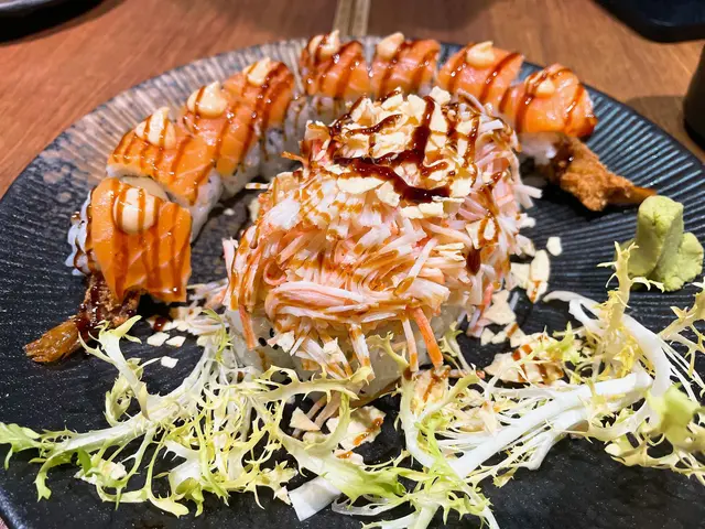朋友相約在觀塘工業中心古今二短聚,初頭聽見觀塘工業中心,感覺地點很不方便。但經朋友帶路,原來又發現餐廳位置很方便,距離觀塘港鐵站D4出口,路程只需1分鐘。😂一步入餐廳門口,已看見整間餐廳都佈置好像日本居酒屋。餐廳老闆可能是一個動漫迷,餐廳還擺放了一些動漫Figures。因為今次是短聚,主要都是與朋友傾計為主,所以叫的食物不多。而朋友最想試就是古今二推介特色卷物「金龍卷」,而我就叫了一個「龍卷風沙律」。龍卷風沙律份量不少,除了沙律菜,還有海藻、蟹柳、蟹籽和脆片,再配上特製沙律醬汁。口感清爽香脆,沙律醬汁帶有少許微辣,味道都很特別。金龍卷賣相精美有心思,中間卷物餡料用了炸蝦,最有心思是最尾的那一件金龍卷,放了一條炸蝦尾,令人看見可以想像見到「龍」的尾巴。三文魚頗厚,挺有口感,加上配有少量芝士醬,味道也很有層次感。…查看更多