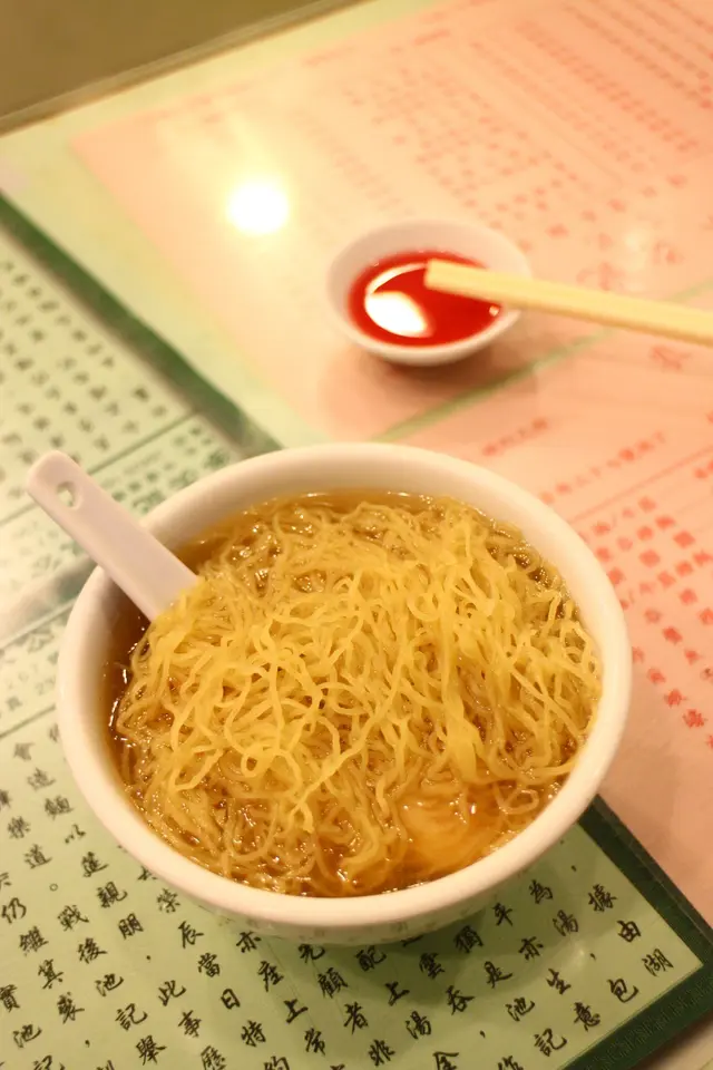 認住真正好食的麥奀記系有"忠記"系後面去永吉街買野,見到麥奀記,老婆話以前都系食哩間,咁就入去啦。窄窄的鋪,有大概10張枱,招呼OK啦,有禮貌,乾乾淨淨,老店算吾錯啦。坐低睇餐牌,伙計亦無催,入來梗系叫了兩個細蓉啦,加一個油菜。等左一陣就來啦。菜和湯麵都是很熱的,其實不一定每一家麵家都做到。雲吞麵(細)~都有四粒雲吞,咬開大部分是爽口有蝦味的蝦肉,好像見吾到豬肉,麵爽沒有鹼水味,湯比較帶胡椒,是扣分的地方。油菜~爽甜但帶一點草清味,可能差一D至熟曬。走的時候問老闆,點解有忠記兩個字系麥奀記後面,佢好細心解析大家系池記不同子孫,但這裡是老店,真系吾講吾知道同池記的關係啊!仲好有信心咁問系咪同其他麥奀記吾同,的確也是啊!