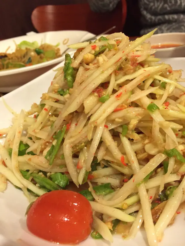 新年食泰菜 Simba等级42016-02-121K 瀏覽 關注 大年初一到親戚家拜年,誰知時間過得快轉眼已經入夜,晚上到外碰碰運氣看哪間餐廳有位。走到鴨脷洲大街,烏燈黑火,只有寥寥數間餐廳有開業,其中一間便是泰象。鋪頭開揚,空間感很好,加上座位舒適,新年在沒有預訂餐廳的情況下也算不錯吧,店員也有些泰國人,幾個工作時有講有笑,感覺溫馨。打開餐牌有很多選擇,從頭盤小食到肉類海鮮樣樣俱全,總可揀到喜愛的菜式。小食拼盤有雞翼,蝦餅和魚餅。小食炸得香口,蝦餅爽口彈牙,魚餅味道調較得很好,加入香茅令魚餅鹹味中帶點清新感,是小食拼盤中最為出色。青木瓜沙律有點辣,吃不了辣的我只嚐了一口。木瓜爽口清新,親戚第一次吃驚為天人哈哈,非常喜歡,一個人掃了大半碟。炒河粉味道普通,有點單調。蝦醬炒飯很香,味道其實不錯,但早前吃過更好的蝦醬炒飯後這個便略嫌普通,臘腸煎香一點會更好。 烏頭新鮮美味,湯頭加入鹹檸檬及香茅味道鹹鮮,吃到一塊肉也不剩!總括來說是大眾化的食店,味道也不錯,是不錯的選擇。…查看更多+ 8以上食評乃用戶個人意見 , 並不代表OpenRice之觀點。1分享新年食泰菜 泰象泰國越南餐廳 https://s.openrice.com/QrbT0HDKc00檢舉 張貼 評分3味道4環境4服務4衛生3抵食推介美食小食拼盤(小)青木瓜沙律香茅明爐魚小食拼盤用餐日期2016-02-08等候時間10 分鐘 (堂食)人均消費$120 (晚餐)