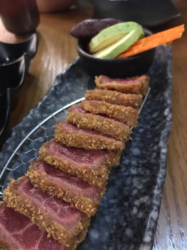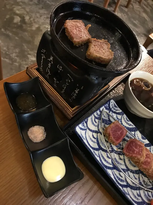 朋友中意食熟D,而我中意生D,咁就可以根據個人喜好,將吉列牛放上小型鐵爐煎一煎,自己黎決定吉列牛嘅生熟程度。外層鬆脆,內裡肉質鮮嫩,真係好睇又好食