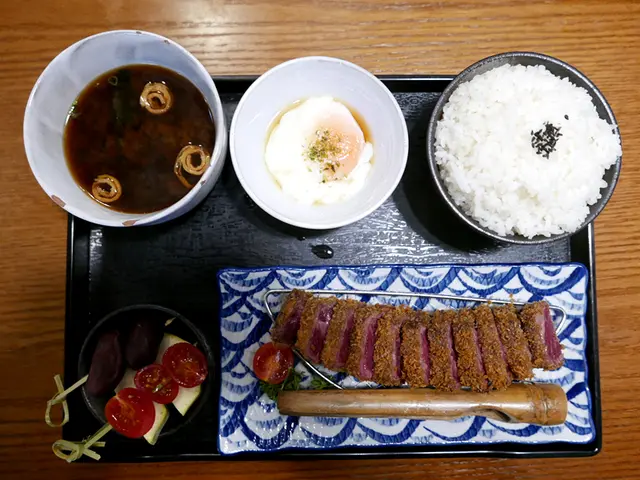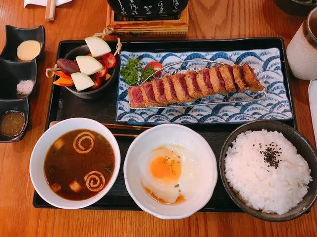 頂級安格斯牛吉列御膳:呢個御膳係以美國安格斯肩胛肉製成牛吉列,連埋和風野菜盛合,即係有南瓜片、蕃薯仔、翠肉瓜。你會見到佢外層吉列嘅部分唔會太厚身,而內裡肉質仍然粉紅,淨係望落已經流口水