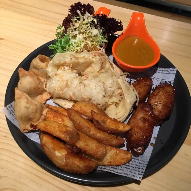 經過門口見無咩人 裝修有幾特別 就行入去試下叫3個餸 牛腩咖喱 海膽炒飯 小食拼盤 3樣都好唔錯喎