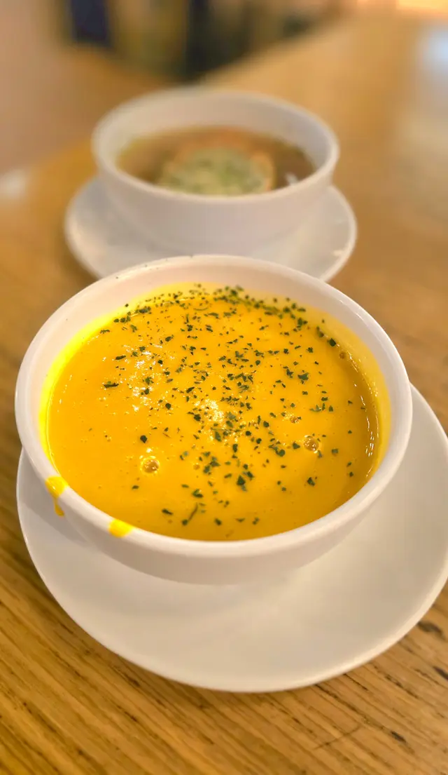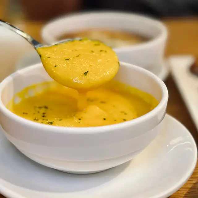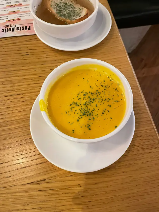去到紅磡港鐵站過條橋就已經有商場都幾多餐廳可以選擇一入門口離遠已經見到呢間意粉狂熱晚餐有好多款套餐可以選擇~但我地既想自由啲咁揀多啲嘢食又想飲湯同飲品~所以見到只要叫主食就可以加錢升級做套餐!實現晒我地所有願望!🎃香濃南瓜忌廉湯南瓜香甜忌廉濃郁~飲完暖笠笠🧅法式芝士洋蔥湯湯頭香濃同洋蔥嘅甜味做到味道平衡仲配咗塊烤到香脆嘅麵包~滿足🥗香草烤雞凱撒沙律生菜爽脆~雞肉質鮮嫩多汁 配埋凱撒醬好又清新又開胃🥓芝士煙肉焗薯皮薯皮外脆內軟濃郁芝士同鹹香煙肉好夾每啖都好滿足感呢兩份前菜都好吸引~跟住就到主菜啦~🍕美式辣肉腸披薩有前菜又有湯 所以我哋叫左份細嘅一客切左三片 份量啱啱好薄底披薩加香辣肉腸片~口感酥脆~辣味適中~更惹味🦀軟殼蟹配蕃茄濃汁鮮製意粉軟殼蟹炸到外脆內嫩手工意粉吸收晒蕃茄醬嘅濃郁大大碟而且味道鮮美~令人胃口大開!🍰自家製提拉米蘇 好香咖啡同可可味!浸滿炭燒咖啡同香甜咖啡利口酒嘅手指餅層次分明加埋香滑厚重嘅軟芝士口感綿密不膩令人心滿意足,完美的甜品收尾🍹跟餐飲品:橙汁、凍檸檬茶清爽解膩…查看更多