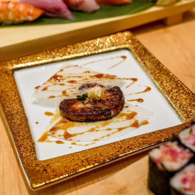食咗咁多生嘢,嗌返份熟食,鵝肝煎到金黃閃閃,有開胃嘅黑醋配脆米紙,食落也揮發著餘香