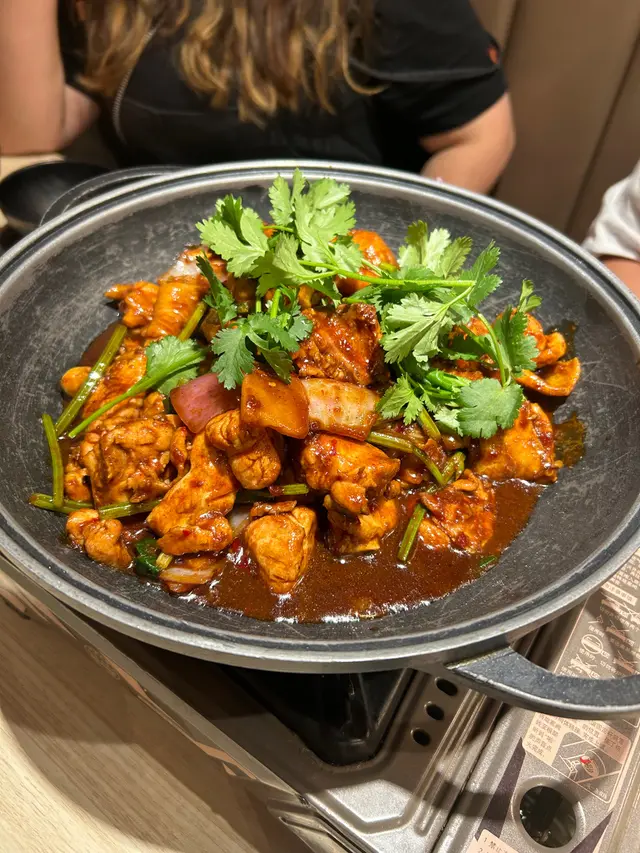 又係朋友請食生日餐,介紹咗佢成日去食嘅川菜,店舖不算大細,全場滿座,剛好有客人嚟咗我哋才有位。我哋叫咗滕椒酸菜魚同香辣雞煲酸菜魚係我嘅至愛,魚片夠大片夠嫩滑,滕椒湯底夠晒惹味,飲完都唔覺得口渴,正!不過略嫌配菜太少,有萵筍、闊薯粉同大豆芽菜,每樣份量都非常少,如果加多些少就更完美!叫咗小辣嘅香辣雞煲,雞肉夠嫩夠入味,辣度又適中唔錯!店家的串燒,亦都做得十分出色,呢份茄子少少辣,茄肉欶淋,真係超級好食!燒墨魚餅亦都係必要嘅,非常彈牙👍另外叫咗兩杯特大同一杯細嘅金吉話梅七喜,食辣嘢配上這一口,簡直係最佳拍檔!下次再來,因為仲有好多食物我都想食😋…查看更多