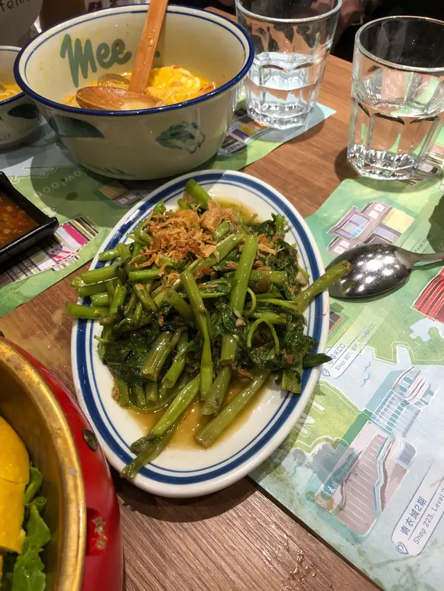 呢間應該係上水唯一一間食東南亞野既餐廳。上次我同大家介紹過外賣,今次我去堂食,試多幾款菜式~1️⃣十勝紅豆伯爵奶茶&十勝紅豆抹茶(各$32)飲品黎到,我先諗起我冇叫少甜,我仲擔心左一下。🙈但飲落唔會好甜,抹茶味夠。👍🏻最正都係啲紅豆,夠林又夠甜☺️。❕除咗可以堂食叫野飲外,餐廳外設有飲品corner,就好似一間手搖飲品店咁,經過想淨係買杯飲品都可以架~2️⃣馬拉盞炒通菜($64)均衡飲食點少得蔬菜。呢碟通菜色澤好靚,通菜好新鮮~少少辣好惹味,食落仲好有鑊氣添!❕唔想食炒菜,呢度仲有好幾款泰式沙律俾你揀~3️⃣馬來蔗蝦(3件)蝦肉真係包喺一條蔗仔上面先拎去炸。外面夠脆口,蝦肉夠彈牙,食到入面仲有微微蔗香味!伴碟仲有米粉,好欣賞米粉唔會一夾即散。❕喜歡香口炸物既朋友可以試試!而米粉就建議用此店既魚露甜酸汁撈黎食。4️⃣地道串燒(牛、雞各兩串)($66)串燒淋上有少少椰香既醬汁,另外有沙嗲醬俾你點。沙嗲醬同平時食開既有啲唔同,我詞窮唔識形容😆,但朋友認為個醬幾正宗幾有風味。側邊仲有啲配菜、麵包。我地覺得個醬幾好,用左麵包點黎食。❕菠蘿非常甜😋,食完咁多肉,再食返幾舊菠蘿,解膩一流~5️⃣馬來蜜汁炭燒厚切豬扒撈檬($68)好多豬扒,多到睇唔到檬粉!食肉朋友岩晒~呢度既魚露甜酸汁都好出色,頭先撈米粉,而家撈埋檬粉。😛❕有時食撈檬,食完我會口乾口渴,呢樣係我對食物有冇味精既指標。但喺度食撈檬冇呢個問題,做得好!6️⃣movenpick雪糕(雲尼拿&士多啤梨味)(一杯$18)最後用甜品作結,大滿足!❕晚市$18一杯,但中午跟套餐叫只需加$12咋,好抵呀!🤩…查看更多
