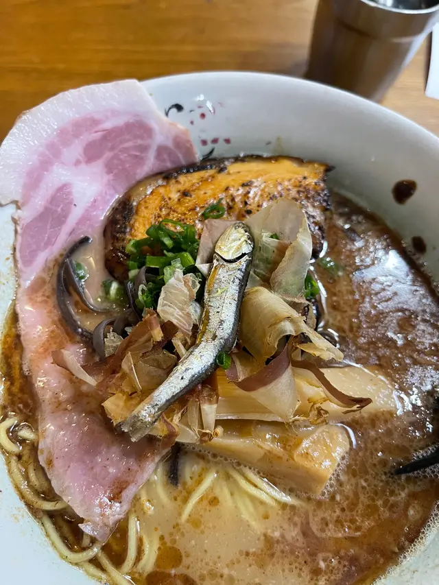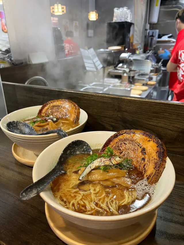 星期日夜晚排了15分鐘就入得,店員會在排隊個陣比定餐紙等我地嗌定食咩,到入坐後好快就會上菜👍🏻我覺得這服務幾貼心🫡我地分別兩碗都係嗌左魚介湯底😋🫶🏻魚介湯底+慢煮梅肉叉燒(3片)+博多麵一飲湯底好重魚湯味,好濃郁,湯底好有誠意,不過飲幾啖就要開始食麪😂😂如果吾係就會有啲滯,因為濃底較濃厚容易膩😀叉燒相對較普通😂🫶🏻魚介湯底+厚燒五花腩叉燒(1片)+博多麵吾好見得1片以為會吾夠飽😇實則五花腩叉燒係厚切,起碼目測有2cm咁厚。我本身都一般食肥膏,但樸一係用灸燒燒叉燒,勁入味,同埋做到半肥瘦,食落好有驚喜,二揀一既叉燒,一定要試厚燒五花腩叉燒🥰🥢…查看更多