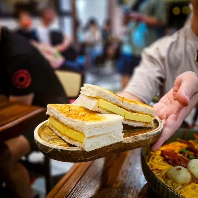 呢間餐廳主打東南亞菜式,店主更係大廚出身,廚齡達廿年👨🏻🍳💗獅城芽菜走地雞飯配輕怡白胡椒排骨茶($105)海南島文昌雞皮下脂肪少,雞皮爽滑,肉質嫩滑而雞味特別鮮香濃郁,可以分別蘸上薑蓉、辣醬或黑醬油提升風味🐓墊底嘅怡保芽菜清甜爽口,吸收哂雞油同醬汁精華🎍油飯特意選用泰國米,預先以香茅、斑蘭葉、黃薑、紅蔥頭等炒香,再加入椰奶調味,飯粒飽滿煙韌,吸收配料香味🍚肉骨茶以新加坡白胡椒炒香熬成,胡椒味重但唔搶鼻,同時帶藥材甘甜。排骨燉至軟嫩鬆化,另外加入蔥花同豆卜🍲💗Susan豬手飯($83)豬手炆得醬香入味,豬皮Q彈充滿骨膠原,肉質鬆化🐖豬手飯更配咗一隻滷蛋同花生,最畫龍點晴當然係加咗酸菜,可以中和油膩感🥬💗Susan雞翼(+$24/ 3隻)雞全翼炸至皮脆內嫩,肉汁豐富,味道香濃惹味🐥💗脆炸鳳尾蝦春卷(+$22/ 4件)米網春卷鬆脆可口,包住原隻蝦、紅蘿蔔絲同肉碎🍤💗鮮油咖央多士($38)香脆多士夾住香甜咖央醬同兩大塊半融牛油,非常邪惡🥪…查看更多