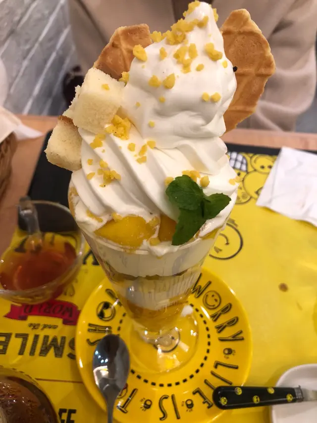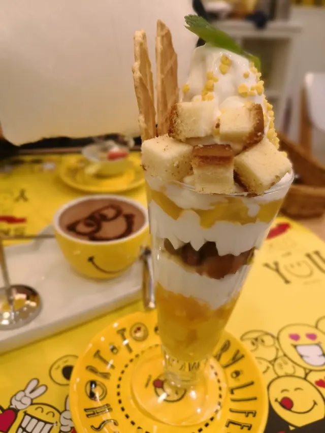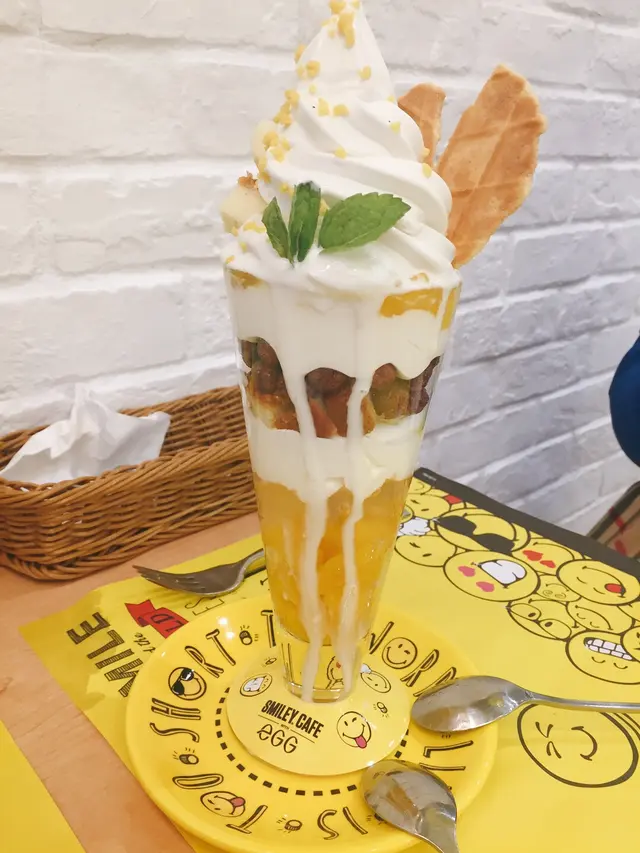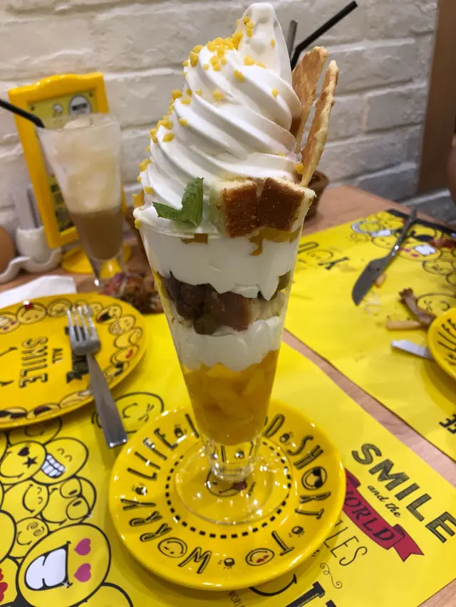 星期日,約了好友在朗豪坊相聚,來得太突然,沒有太多時間去搜尋,揀下揀下發現Smiley Cafe幾得意,而且食評不太差,便決定前去!假日的旺角,很多人,而朗豪坊地下幾層全是遊客,心有點驚去到要需時等位,上到10樓鬆一口氣,人沒有樓下層多,而食店不是太多人,還可以選擇座位😃。食店佈置以微笑😊為主題,黃色為主色調,很有活力,餐具、食物部分有哈哈笑加插,令人忘記煩惱🤩🤩。🍽😋小雲凍特濃朱古力-雲是棉花糖,配香濃朱古力,好可愛香煎肉眼牛扒配薯菜-肉質嫩滑鮮芒果芭菲杯-組合豐富,大滿足特濃朱古力心太軟+軟雪糕-朱古力心太軟不太甜,配雲尼拿軟雪糕,中和味覺😊真心喜歡這間食店,人係要微笑多一D!個人評分