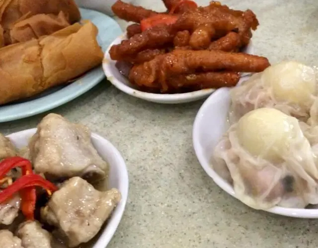 日日茶記早餐真係有點悶要轉轉口味,四十載童年回憶街市林記,質素每況愈下越來越差,而且四眼老闆長年黑面,木無表情沒半點笑容,好難溝通呢!發生另一間兒時回憶,洪記已經重開,有機會再嘆嘆!豉汁排骨飯,飯粒濕爛,豉油不香甜,排骨細細不肥美嫩滑,醃味可口度大跌,幸好保持唔難食。乾蒸燒賣,平凡豬肉球,彈彈有汁夠美滿。鮮蝦餃,厚硬餃皮,好彩鮮蝦算爽甜。四寶雞紮,無魚肚換來兩條芋頭,我不吃的!膠感大紅色蟹柳假假的味道,火腿彈牙咸鮮多汁,雞柳硬實帶渣唔太差,過過口癮罷。豉汁蒸排骨,多年穩陣色香味俱全,肉香甜彈滑嫩但骨頭多並且細細粒。豉汁蒸鳳爪,乾乾瘦瘦不脆彈,豉味淡淡。梅菜蒸肉餅飯,老人家的日常,晨早兩盅加幾件再幾件。簡單的咸甜交錯,反差的美妙絕倫。甜梅菜爽爽,咸肉餅嚥韌,豉油撈濕飯拼得來合格。鵪鶉蛋燒賣,招牌點心嗎?肥豬肉油潤,搭上乾乾鵪鶉蛋剛剛好。高湯鮮竹卷,全蔬菜滴著清甜菜汁,灌著高湯滋潤腐皮,配搭得宜。叉燒腸粉,密不透風,厚過棉胎的結實粉皮,零星的叉燒碎像大海撈針。乾蒸牛肉,山竹牛肉球沒有了!點點微弱滑牛味,微彈微滑入得口。咸魚蒸肉餅飯,實實油浸咸魚件不是霉香種,唯有細心地分成粒粒,大大舊肉餅一丁點咸魚肉加甜豉油撈飯,還是美滿的。間中都要逃離出前一丁,傳統一下嘆杯靚茶,食盅飯加幾件點心。香茜魚翅餃,幸好沒有半點茜味,芫茜青味我食不到的。整粒塞入口有著日式餃子的感覺,蒸日本餃子質地及味道,餡料包得脹卜卜,肉味強烈而多汁。鴨腳紮,鴨腳難得極入味,香甜可遇不可求,皮脆肉彈,蠔汁芬芳。雞絲粉卷,散筲筲未夾已甩皮甩骨,一夾爆開身首異處,鞋鞋雞肉碎沒什麼味道,菜味濃厚不喜歡。潮州粉果,肥嘟嘟外皮油光令令,滑滑跣到舌尖。滿口肥豬肉,可怕的芹菜。牛肉餅蒸飯,明明牆上掛著鮮牛肉飯,但只有牛肉餅供應,食得到檸檬葉的香氣。輕易將肉餅顏得粉碎像午餐肉,淡淡的調味加甜豉油撈飯無意見。糯米雞,品型糯米雞?雖然眼測沒什麼餡,食落味道不得不讚呢!肉汁濕濕混著黏黏香甜糯米飯。鵪鶉蛋正常,雞中翼一開二,乾鞋硬霉雞肉,迷你骨杉杉。炸雲吞,脆卜卜油淋淋的雲吞皮,雲吞餡有肉無蝦。幾次沾上咕嚕汁放近嘴邊擘開口都聞到怪怪的氣味,油益味?試試淨食香脆無異味,證明係咕嚕汁出事。春卷,深啡色燶燶地,咬落空盪盪,滿嘴滿嘴都是油。蘿蔔絲椰菜餡,竟然係齋春卷。…查看更多
