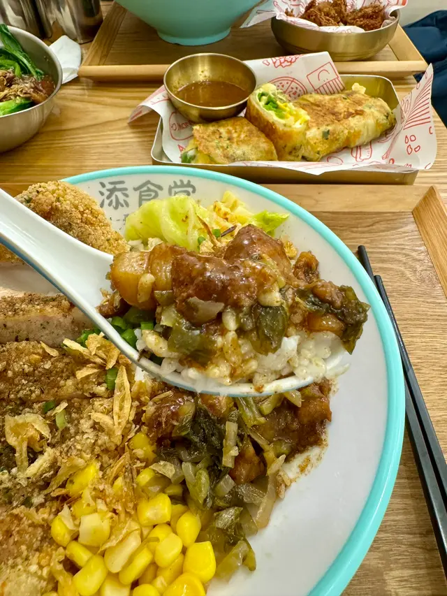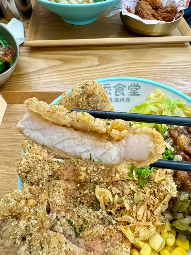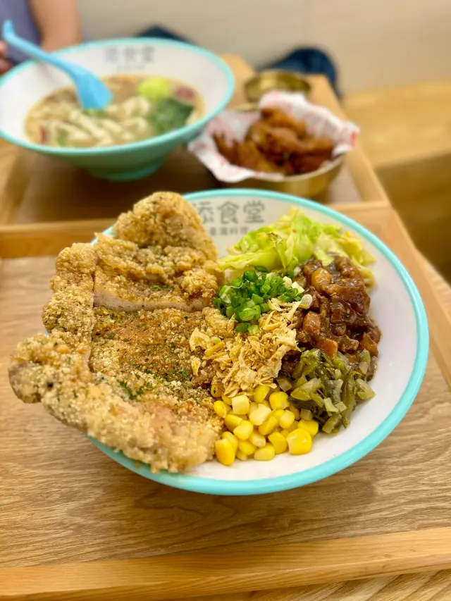 大角咀大全街新開張的台灣小館,裝修簡約清雅,座位也算寬敞。餐廳主理台式小食、麵食和便當。惠顧主食還附送飲品。店員服務態度好,有耐性。「紅燒牛肉麵」,份量充足,一大碗,材料有牛面肉、牛肚和牛丸,相當豐富。牛面肉腍軟入味,牛肚爽口,加上湯底濃郁惹味,配上手工刀削麵,爽滑彈牙,美味無窮,果然是“鎮店之寶”。「鹽酥豬排骨滷肉飯便當」,來了一大碗,大大塊鹽燒豬扒,外皮酥脆,肉質鮮嫩,甘香可口。滷肉七分瘦,三分肥,滷得香噴噴,送飯一流。台式小食:「甜不辣」,香皮煎香,蔫靭口感,加上醬汁來吃特別滋味。「炸花枝丸」,香口彈牙。「鹽酥雞塊」,外皮炸得酥脆,裏面雞肉鮮美,是必選的小食。「台南蝦卷」,外皮卜卜脆,蝦肉鮮甜,口感不錯。台式飲品:「柑橘蜜話梅水」,甜甜酸酸,大粒話梅,有特色的飲品。「台式奶茶」,茶味清香怡人。飽餐一頓美食之後,意猶未盡,真想再“添食”!…查看更多