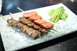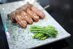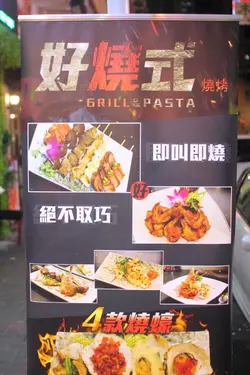 記得以前細個見到車仔檔有串燒,媽媽都會買一串兩份食,現在車仔檔絕跡,街邊檔即使有串燒都以快熟的魷魚、腸類和丸類為主,要吃有質素的串燒,通常都要去日式居酒屋。好燒式算是少有走平民路線的串燒店,串燒大部份$20以下有交易,即使較為貴價的海鮮或扒類,都不過百元,而且燒物也不馬虎,會因應不同食材用不同的調味料,如孜然粉、七味粉、胡椒、醬油等等。************是晚跟朋友在附近晚飯後意猶未盡,本想食糖水,但見這間串燒店幾多人幫趁,而且價錢大眾化,即管試試。好燒式走平民路線,店面不算大,座位間距離亦較近,但尚算乾淨整潔。點菜式一張A4紙兩面睇晒,食物款式非常多,主要分為海鮮、肉類、蔬菜、小食、意粉、廚師推介和飲品。食串燒點都要叫野飲,首先每人點一枝飲品,加多寶($14)和鴻福堂涼茶($15),價錢合理。每兩位有一碟泰式酸辣汁,侍應介紹是自家製,味道有點像泰式生蝦汁,酸酸辣辣好醒胃。