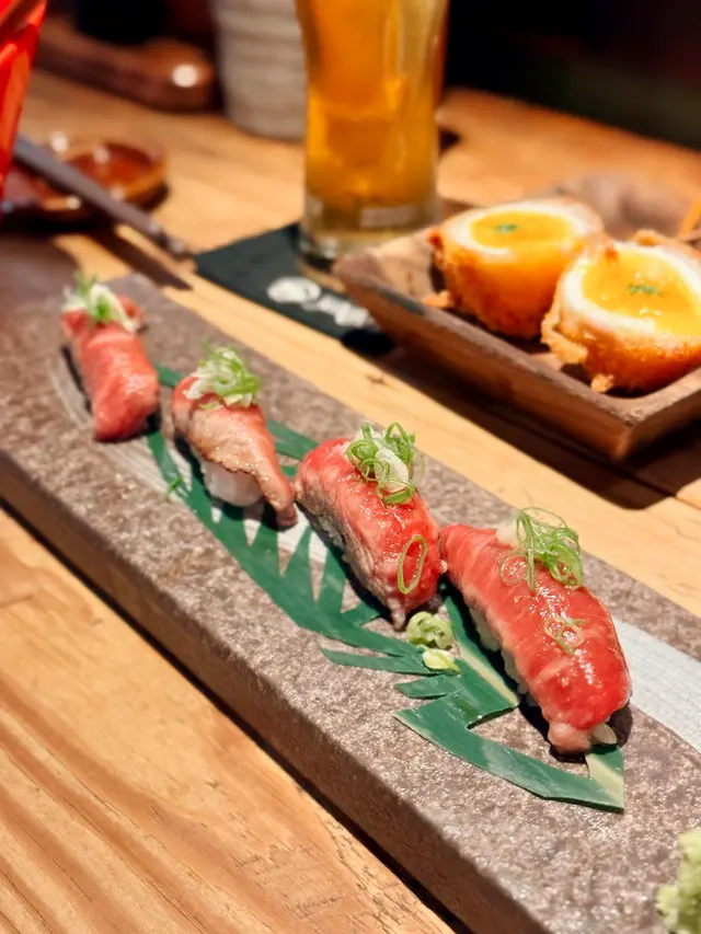一間值得再次encore的日式居酒屋🏮上次吃過這裡的炸串後便念念不忘,今次特意再來,順道吃吃他們的鍋物🍲發現很多日本人專程來吃,特別有氣氛♡⧐ 前菜 HK$40 ⧏請坐下店員便端來前菜,可以自行挑選喜歡的~最後我們選擇了茄子和三文魚,真的很有在日本居酒屋的感覺🏮⧐ 辣魚腸伴芝士 HK$98 ⧏悶熱的夏天裡有時候實在不太有胃口,便點了一份辣魚腸伴芝士,很有驚喜.ᐟ盛在香脆的多士上吃,這款開胃小吃真的很不錯ദ്ദി ·͜·冰冰涼涼又帶點辣,吃完便很開胃~ ⧐ 博多牛腸鍋二人份 (鹽湯底) HK$320 ⧏作為博多名物,這個款鍋物當然有明太子.ᐟ另外還有主角牛腸及大量蔬菜🥬這款檸檬鹽湯底份外清新~味道不會太濃卻很夠味,我很喜歡♡⧐ A4和牛壽司 HK$98 ⧏很美的雪花,A4不會太肥剛剛好~和牛壽司輕輕經過火炙,令油脂都出來了♡入口時很重和牛香味,慢慢在口裡融化.ᐟ⧐ 明太子芝士玉子燒 HK$98 ⧏ 這個明太子芝士玉子燒是我每次來都必點的~超厚的蛋,裡面夾著明太子和芝士🧀芝士還能拉絲,超級邪惡.ᐟ ⧐ 五花肉 HK$22 ⧏⧐ 蘆筍豬肉卷 HK$25 ⧏⧐ 蕃茄豬肉卷 HK$25 ⧏⧐ 日本雞蛋豬肉卷 HK$38 ⧏ 作為炸串專門店,炸串也是必點的.ᐟ今次點的全部都是豬肉類的炸串🐖很喜歡這裡的粉漿厚薄適中,每串都炸得酥酥脆脆的十分好吃♡⧐ 檸檬燒酎梳打 HK$68 ⧏⧐ Calpis grapes sharikin HK$68 ⧏點了兩杯有酒精的飲料,這樣才有居酒屋的感覺.ᐟ檸檬燒酎梳打口感清爽味道酸酸甜甜,很適合夏天喝~另外一杯是葡萄燒酌,香甜易入口,很適合女生♡…查看更多