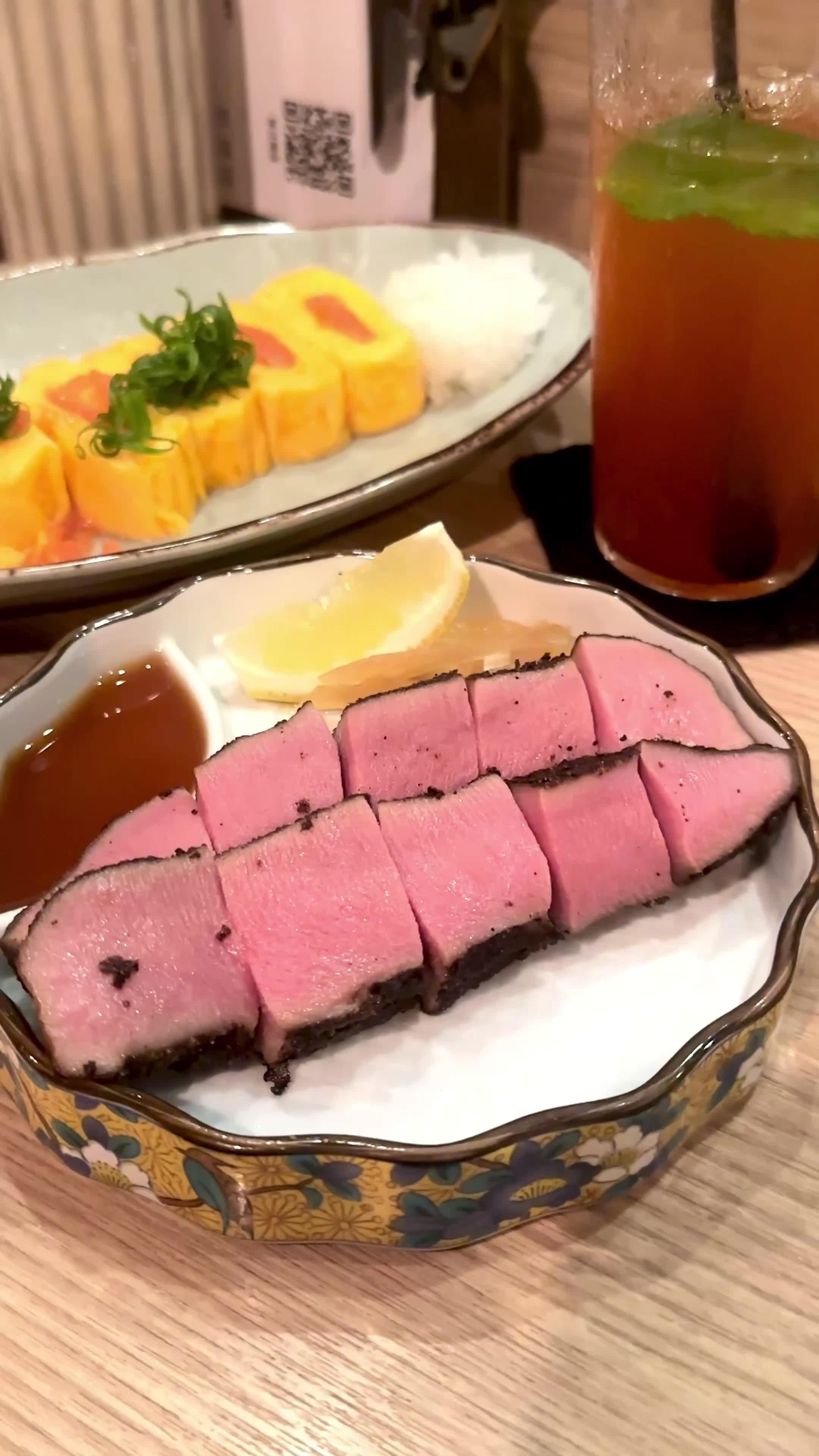 牛腸煱 汁煮吞拿魚眼 火炙和牛壽司 自家製釀酒