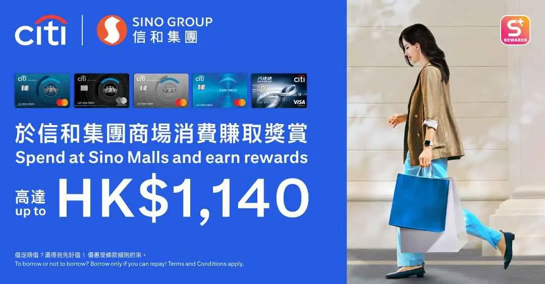 由2025年11月1日至12月31日,Citi信用卡客户于9大信和集团商场¹购物,即可尊享丰富奖赏!同日消费满HK$1,000或以上(最多两张收据)²,并于指定商场礼宾处成功登记点数,即可获得高达HK$1,140奖赏³。