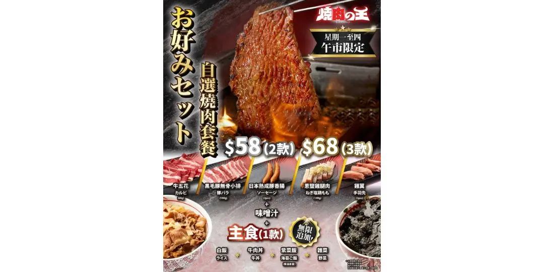 逢星期一至四:燒肉自選午餐$58起