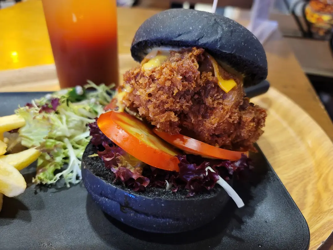 千層吉列豚芝士流心漢堡包配薯條