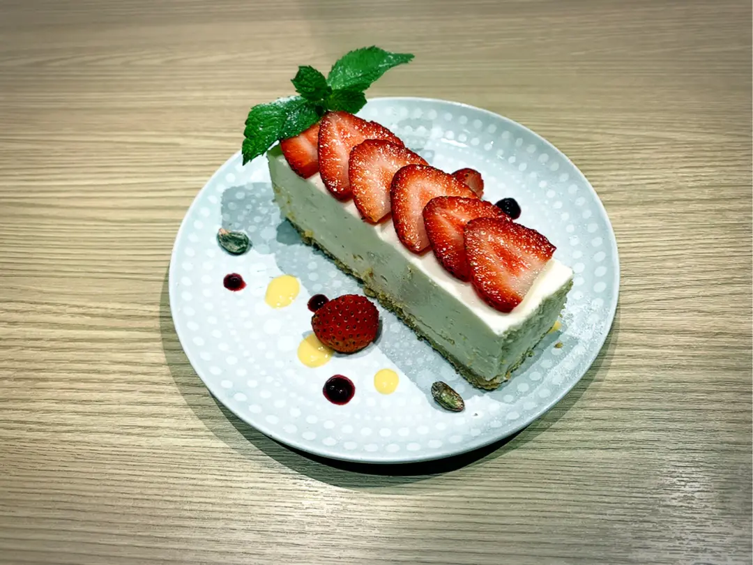 豆腐芝士蛋糕配士多啤梨