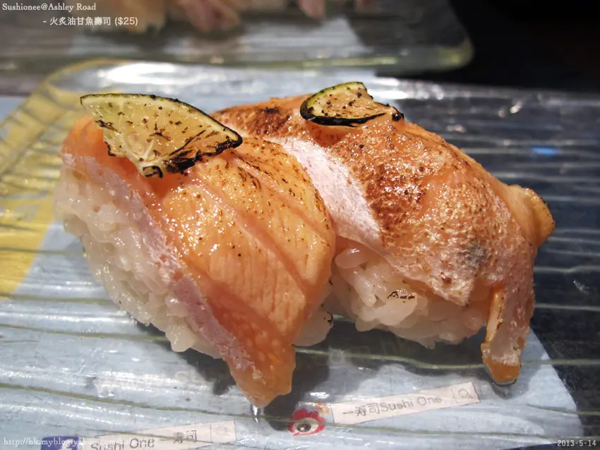 ⑦ 鹽燒青檸三文魚壽司 ($19)